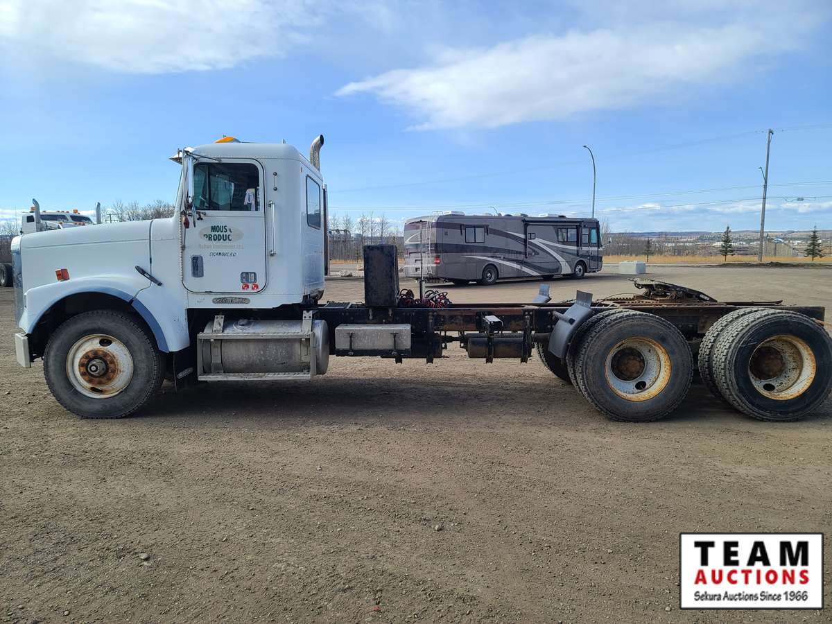 Caterpillar 3176 engine, 15 speed transmission, spring ride suspension, has a wet kit and is long enough for a 20' grain Box, 22.5 tires, 1,158,227 kms