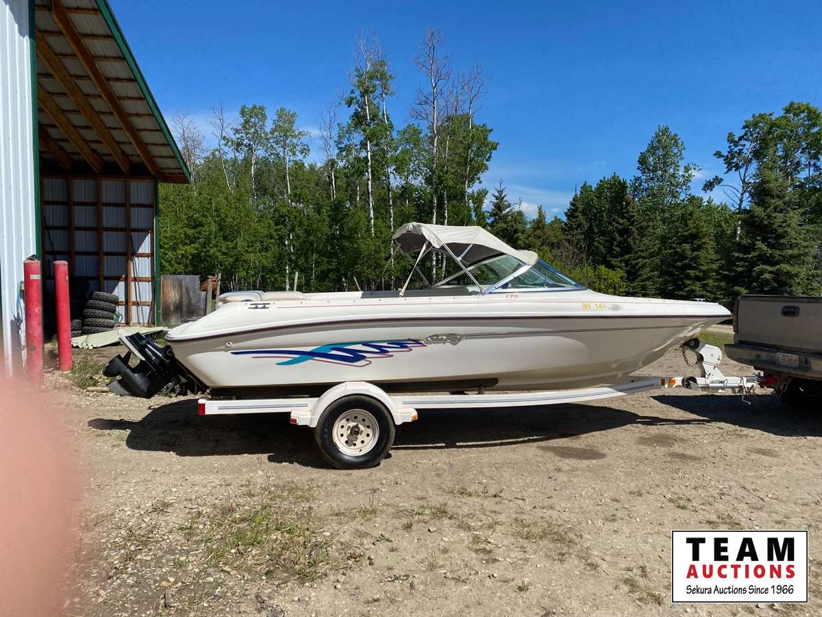c/w trailer, spare tire, life jackets, spare propeller, anchor, docking bouys, knee board, skis, ski rope, knee board rope, tow bars