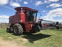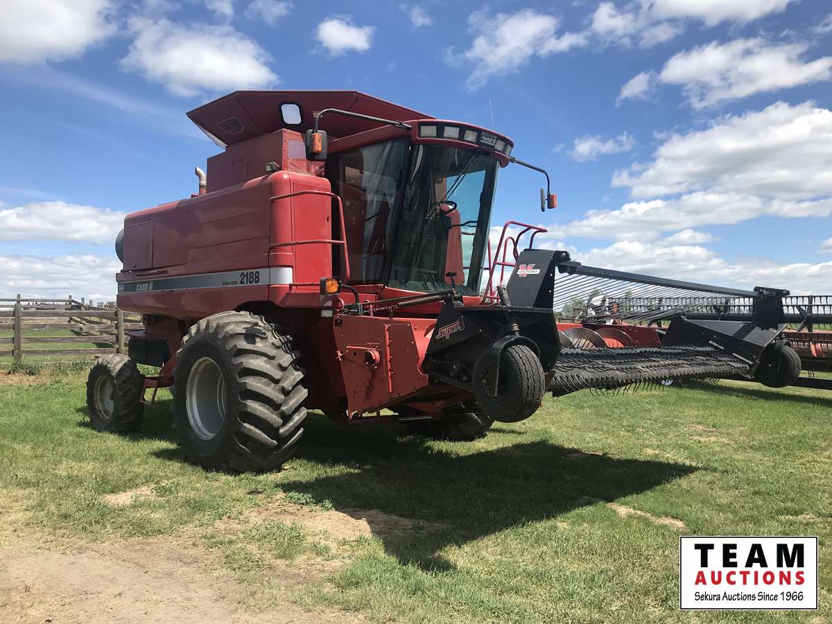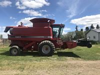 Super 8 pickup, Case IH 1015 header, BIG Top hopper extension, rear beater, chaff spreader, long uload auger, 30.5L-32 drive tires, 2987 separator hours