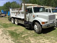 DT International engine, 10 speed transmission, spring ride suspension, steel box and hoist, electric tarp, rear pintle hitch, good 22.5" tires