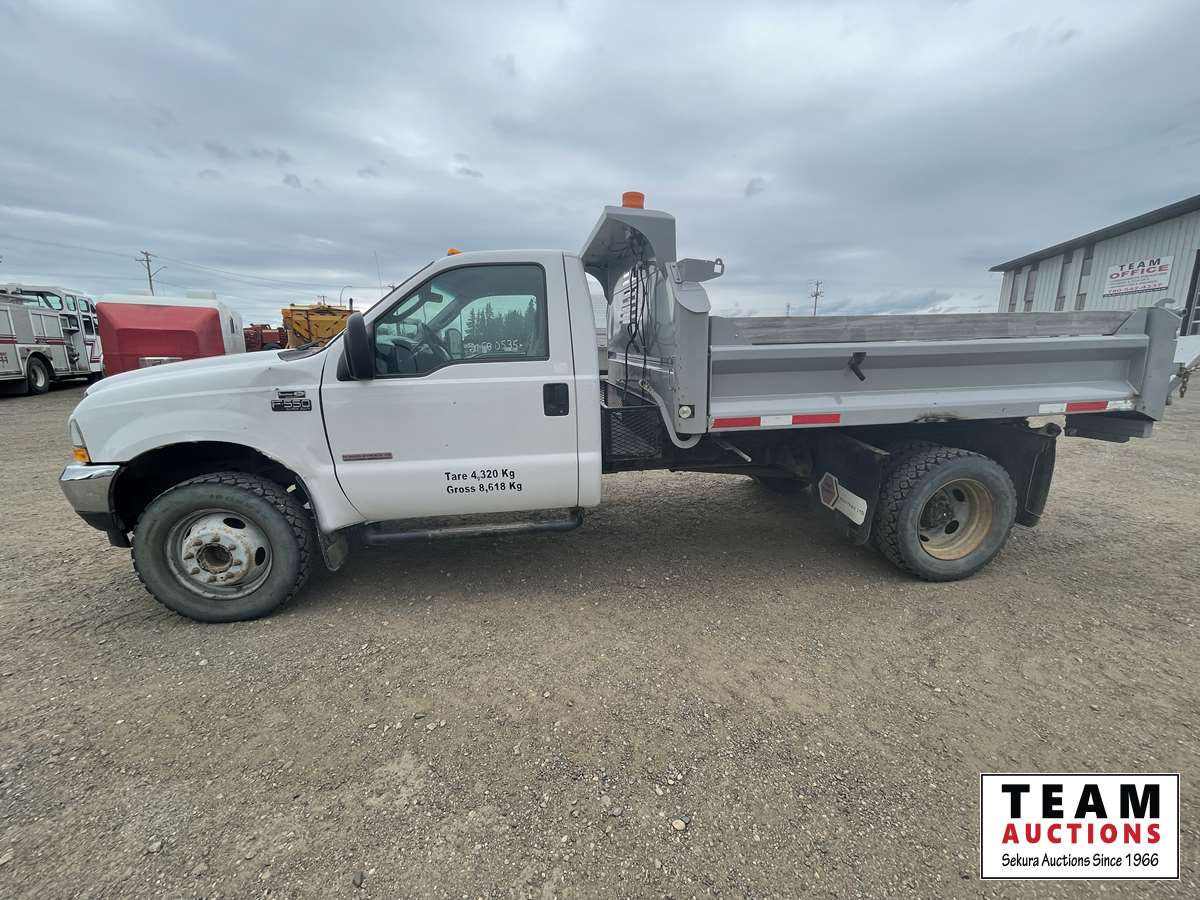 Power Stroke V8 diesel engine, auto transmission, cloth interior, hydraulic dump box, 19.5" tires