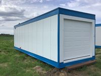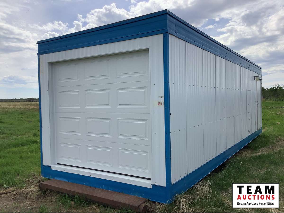 on triple steel skids, gas furnace, all wired, new roll up garage door, come with one propane bottle