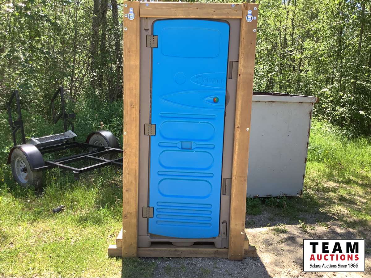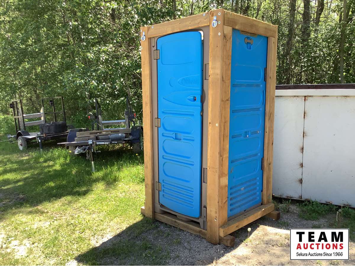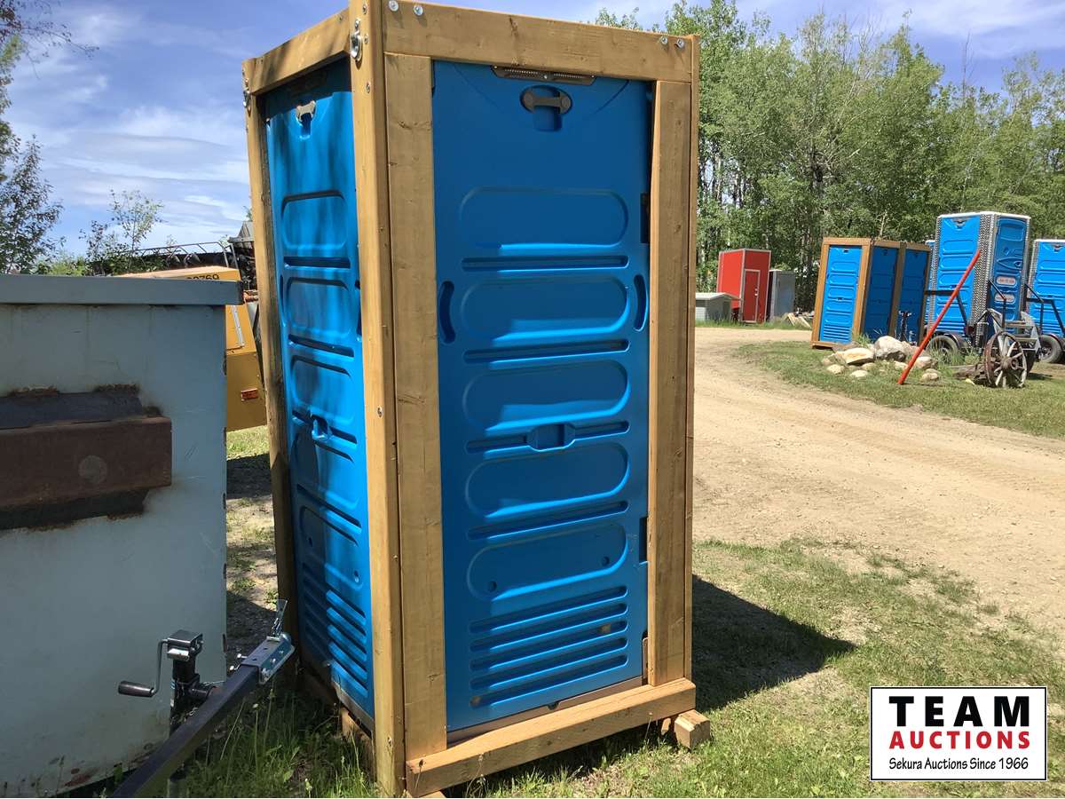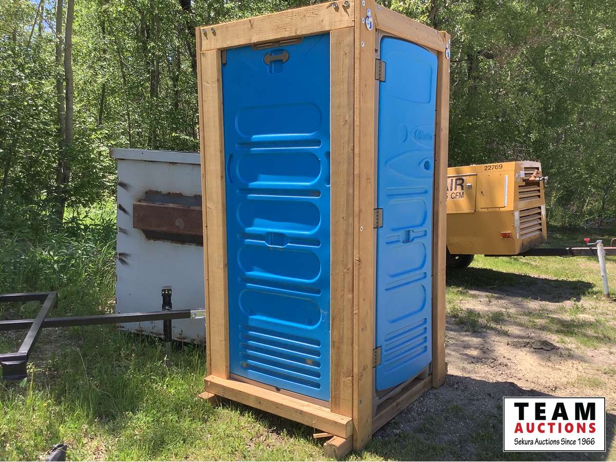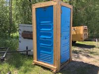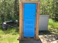 wood framed, set up to a pallet lift Porta-A-Potty