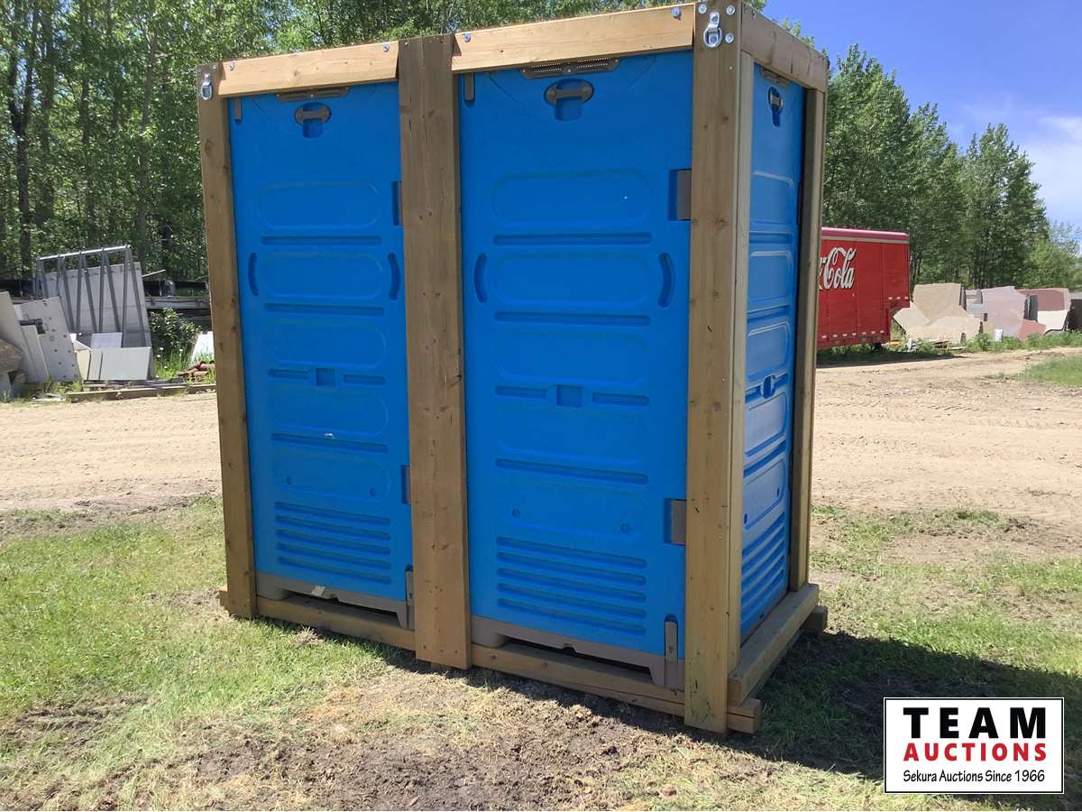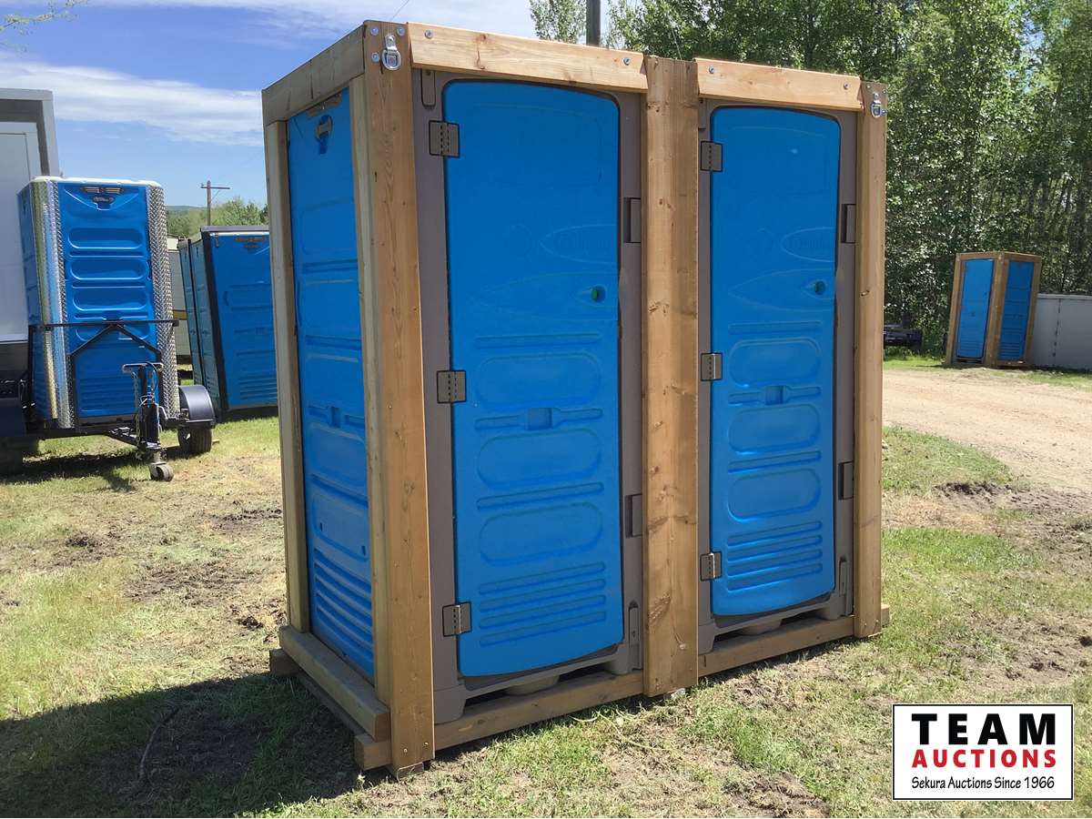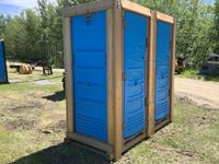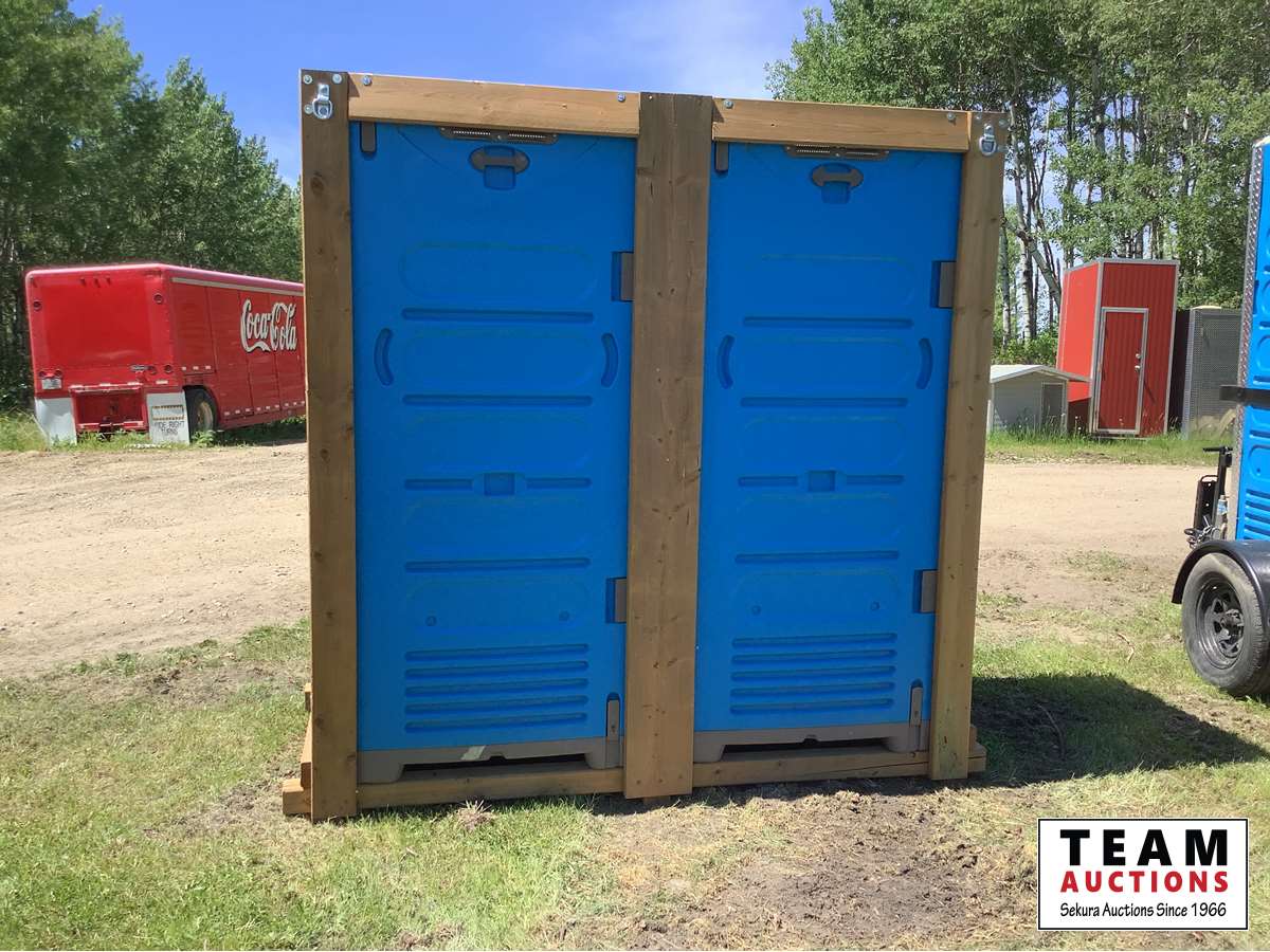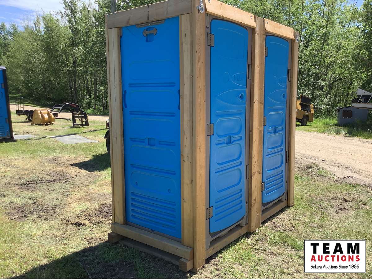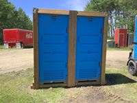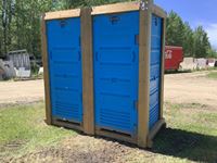 wood frame, flush toilets, sink, heavy duty framing for forklift loading and tie down