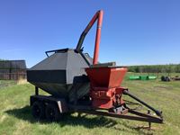 540 PTO, mounted on custom built T/A trailer with hopper where rolled grain is fed into, hydraulic drive side discharge auger with speed control is used to auger feed into bunks as you drive along, also a hydraulic ram can open the bottom of the hopper for ground feeding
