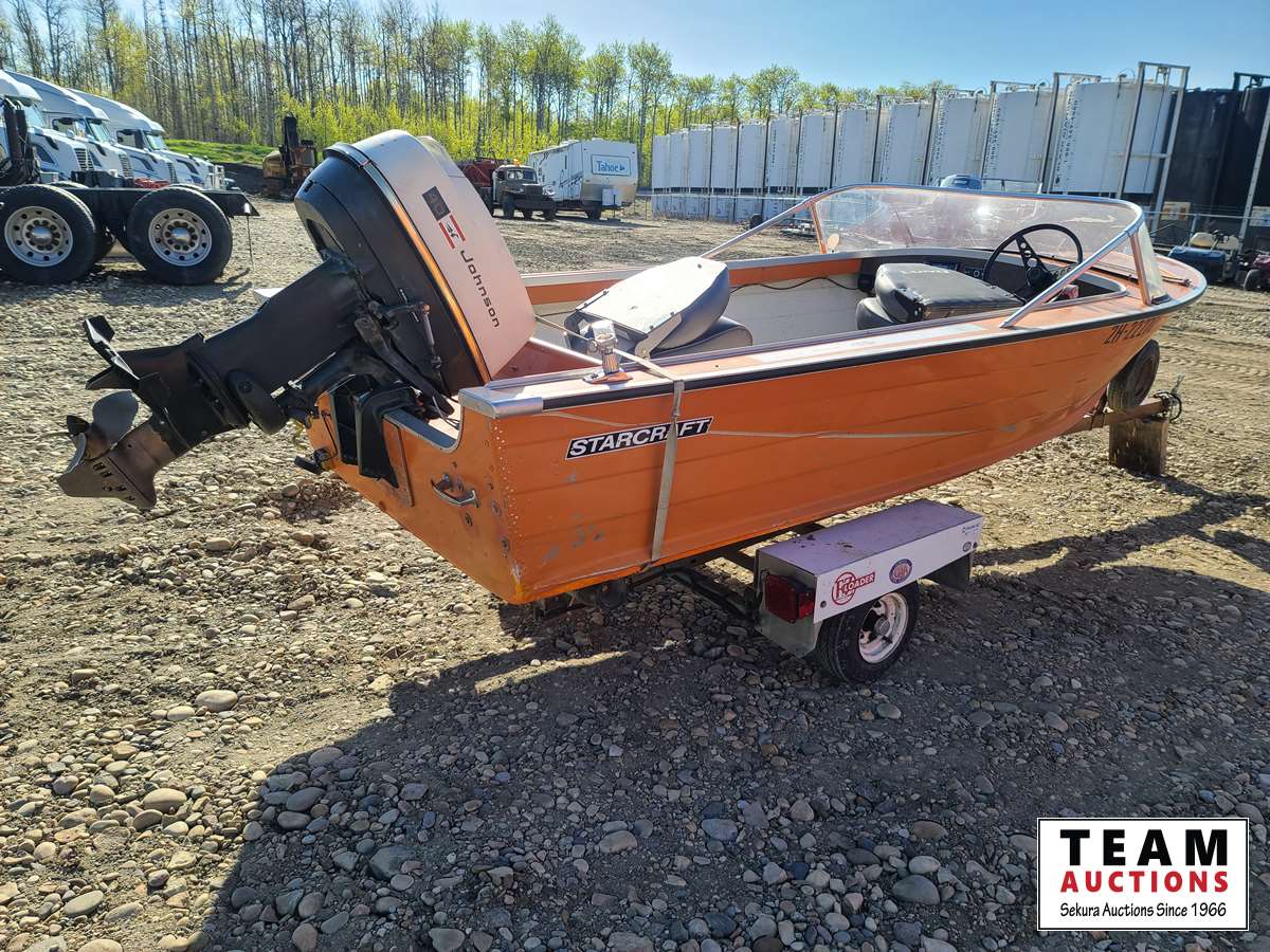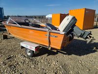 40 HP Johnson motor, electric start, newer swivel seats, CD player, carb overhaul, new tires, new bearings, new LED trailer lights, paddles, dip net, deep cycle 1 yr old battery, c/w 1971 EX-Loader trailer