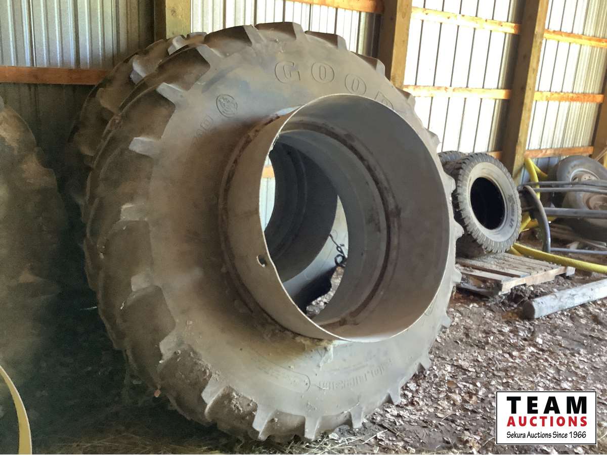 20.8 x 38, hardware, (1) poor tire has a bulge