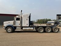 Cummins ISX550, 550 HP, 6 cylinder, diesel, engine brake, Eaton Fuller 18 speed transmission, full rear lockers, 20,000 Ib front, air ride suspension, Edmonton Trailer rig up, headache rack, Rufnek hydraulic winch, low boy ramps, all aluminum wheels, 385/65R22.5 front & 11R24.5 rear tires