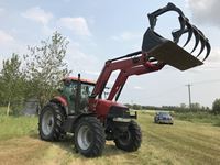 Case L770 loader, bucket with grapple, 18 speed power shift transmission, P/S, left hand reverser, 3 PT hitch, 4 hydraulic remotes, auto guide ready, DEF deleted, 420/85R30 front & 520/85R42 rear tires