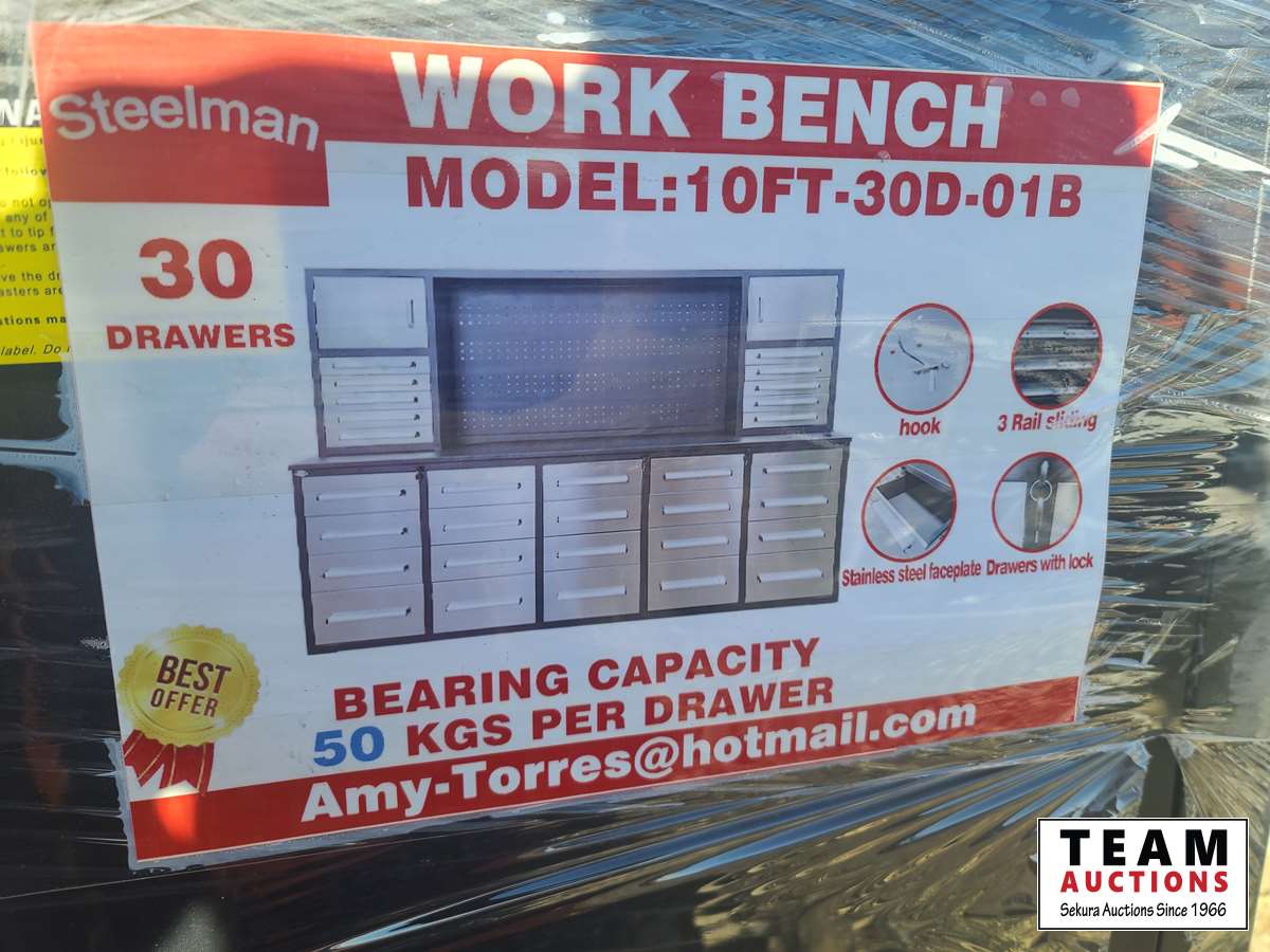 73 Steelman 10 Ft Workbench with 30 Drawers (Unused)