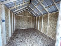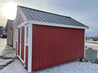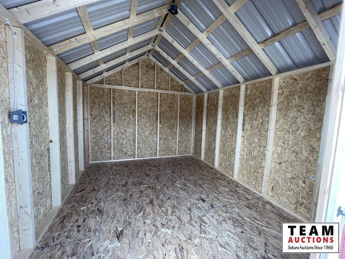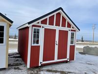 Tin roof, wired for 110 v power, barn doors, (2) windows, on, skids w/ pull bar