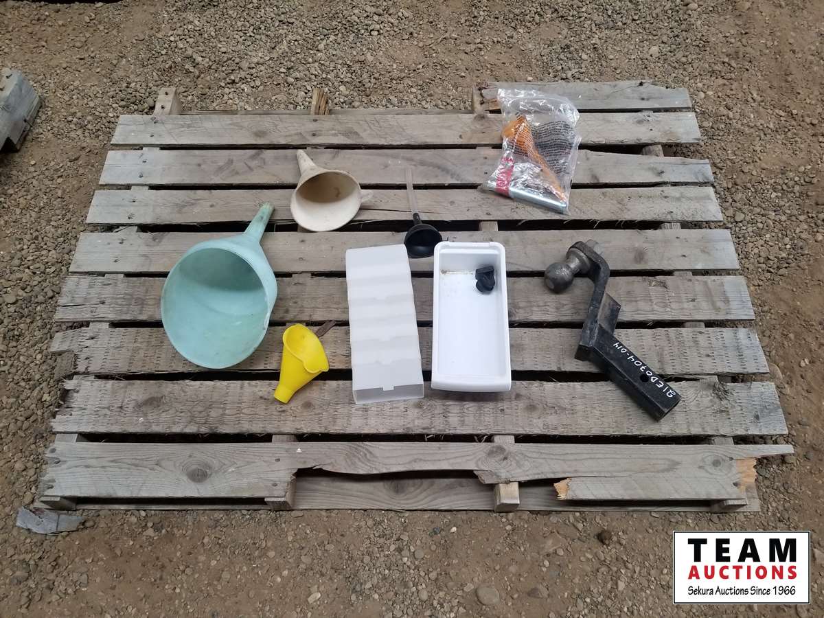 220 2 5/16 in Ball Receiver Hitch, & Misc Sizes Of Funnels & Small Plastic Containers