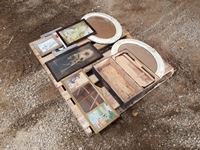 309 Pallet Of Domed Glass Picture Frames, Antique Wall Hangings, Wooden Box