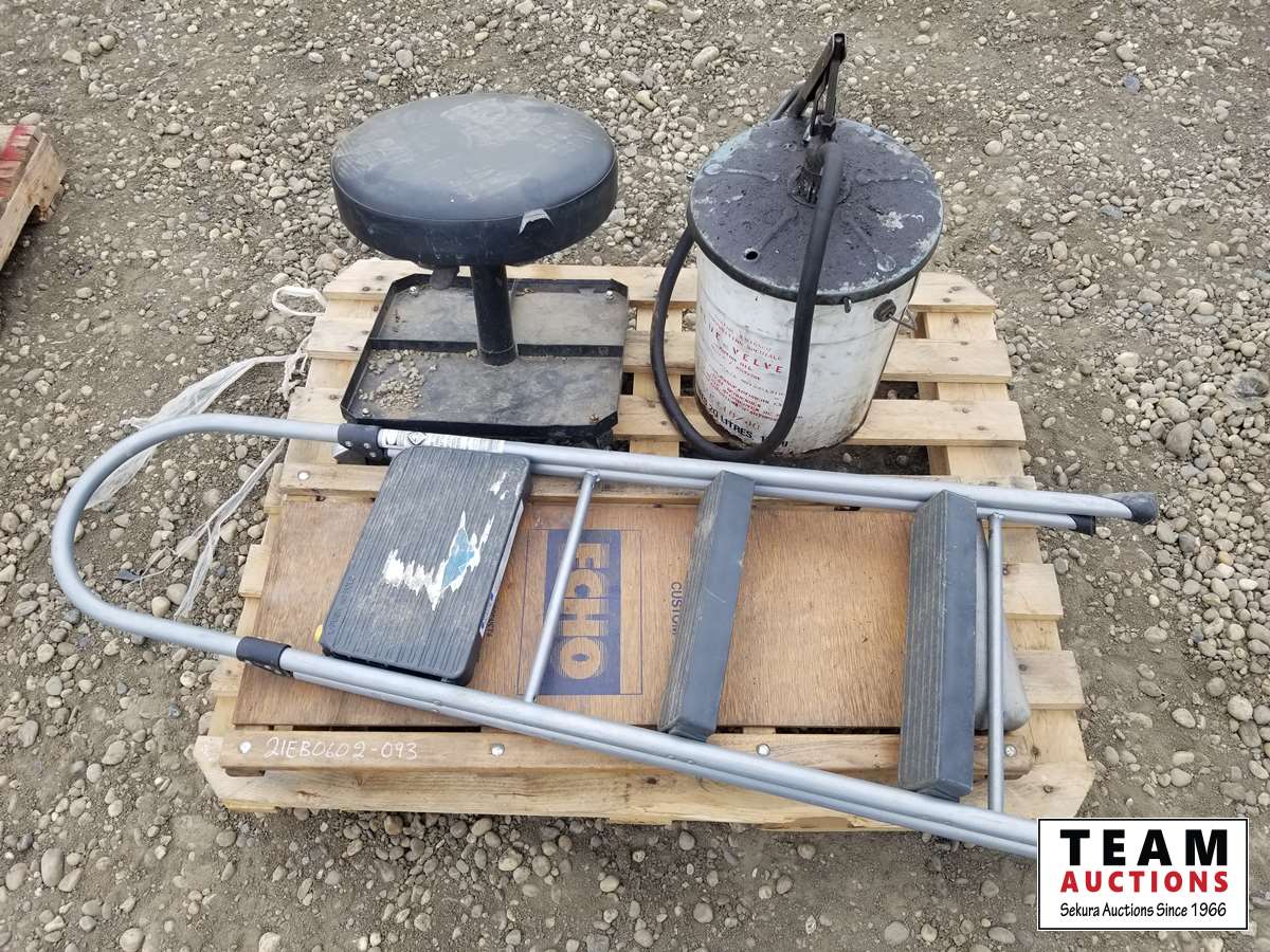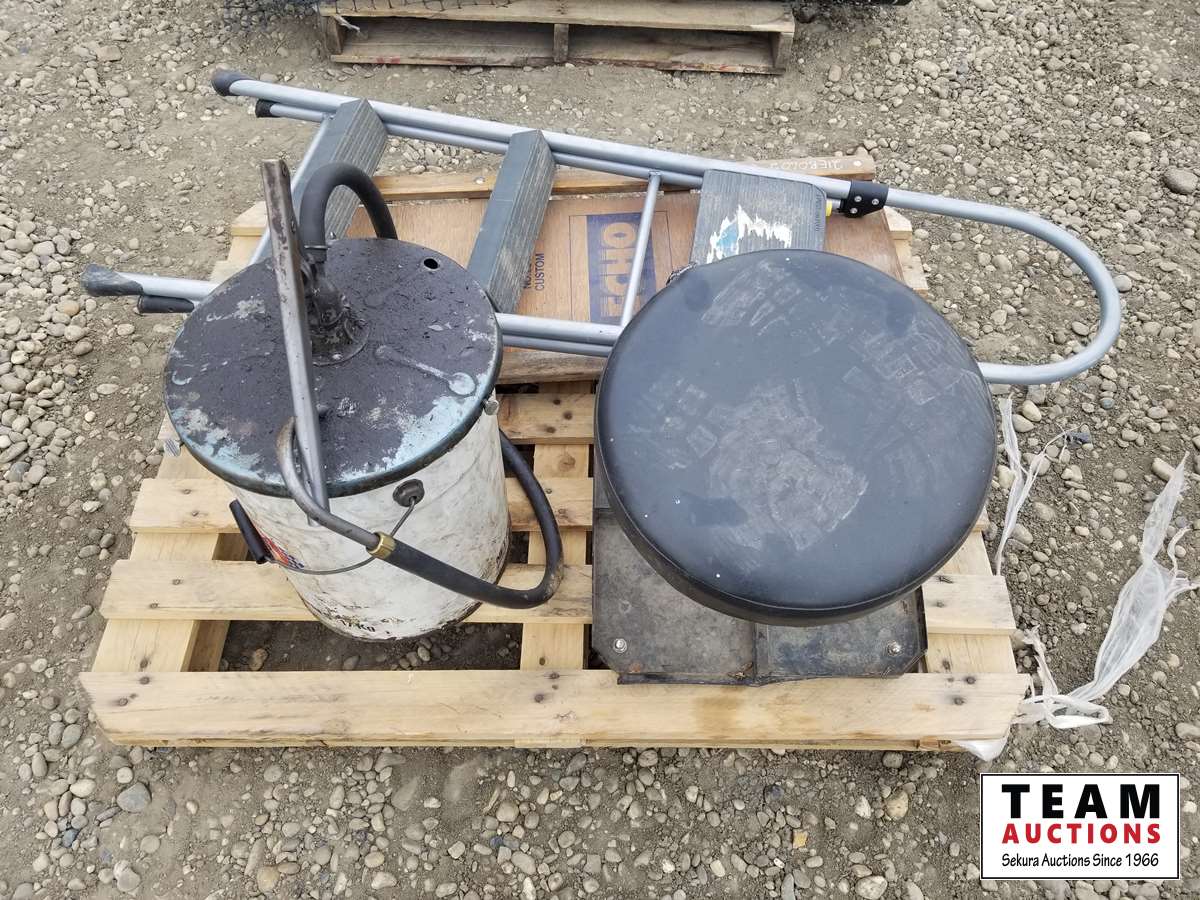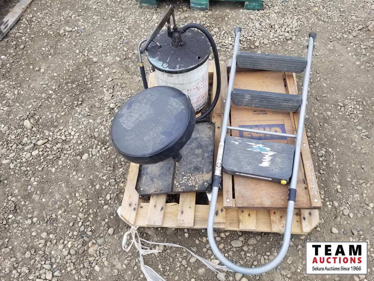 344 Pallet of Misc Shop Items, Stool, Step Ladder, Creeper & Bucket Pump