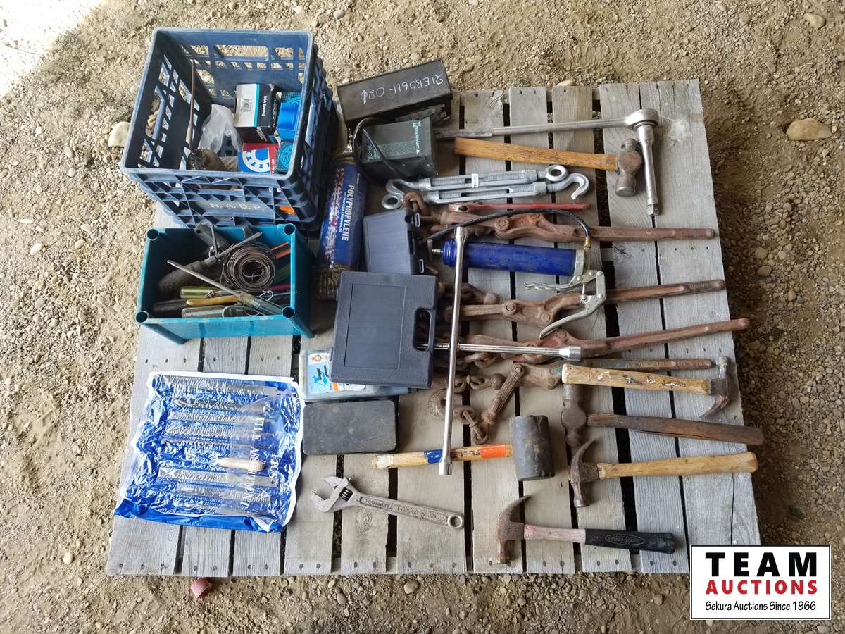 142 Pallet of Misc Shop Tools, Boomers, Bearings & Rope