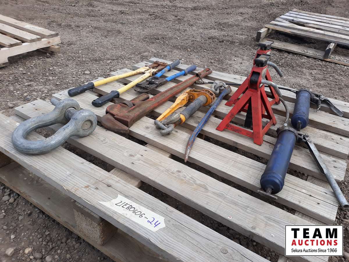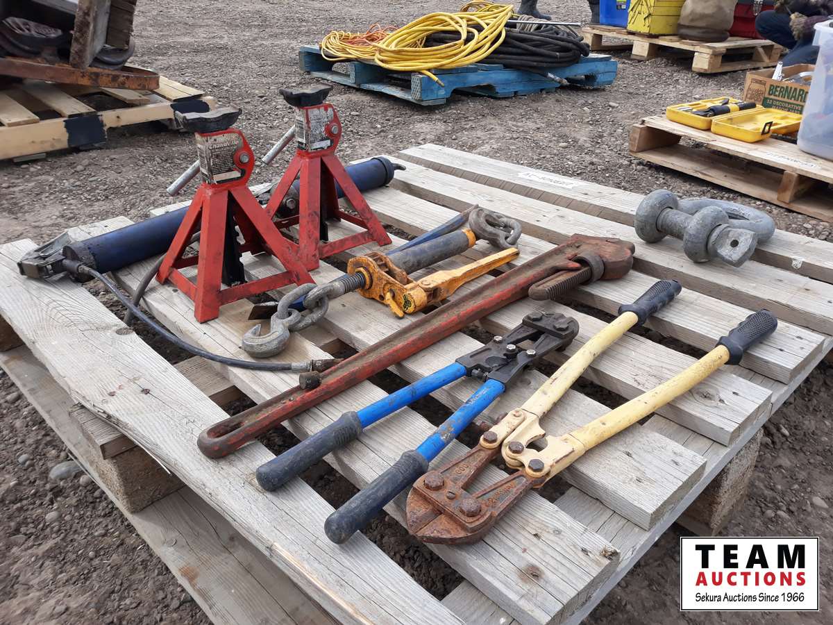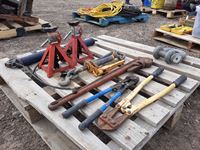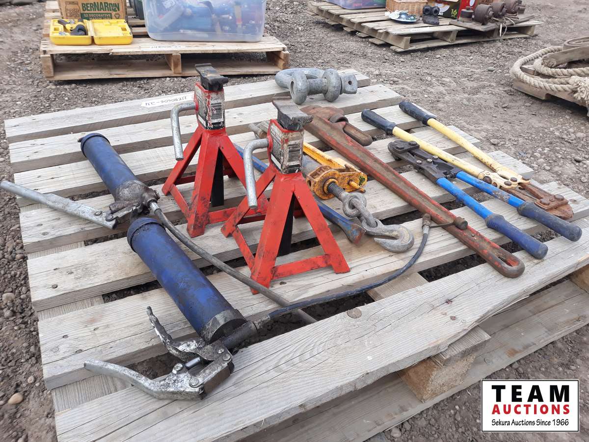 341 Pallet of Misc Shop Tools, Jack Stands & Grease Guns