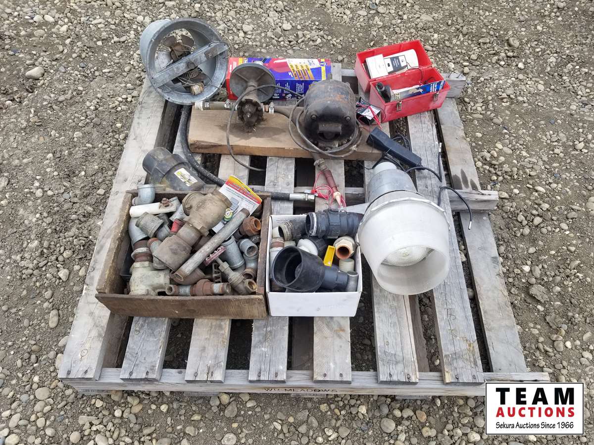 347 Pallet of Misc Water/Propane Fitting, Electric Motor, Fire Extinguisher, & Various Electric /Pressure Testers