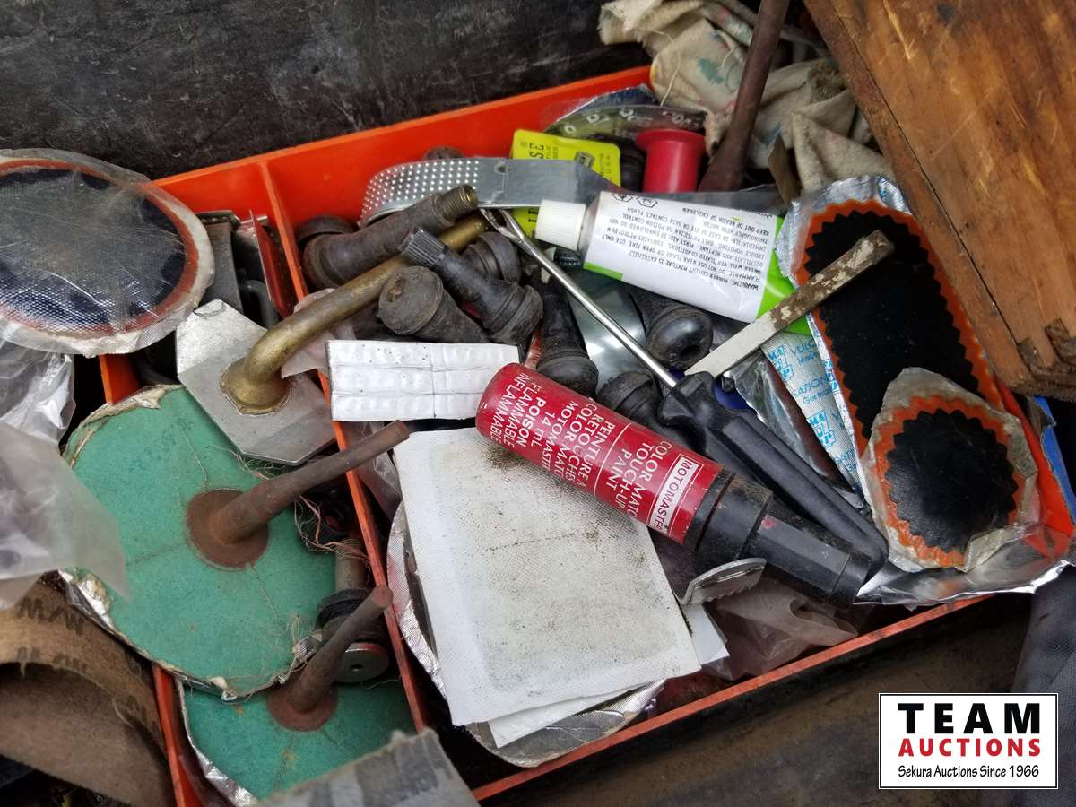 372 Pallet of Plastic Tool Box, Tire Patches, Tools & Air Tank