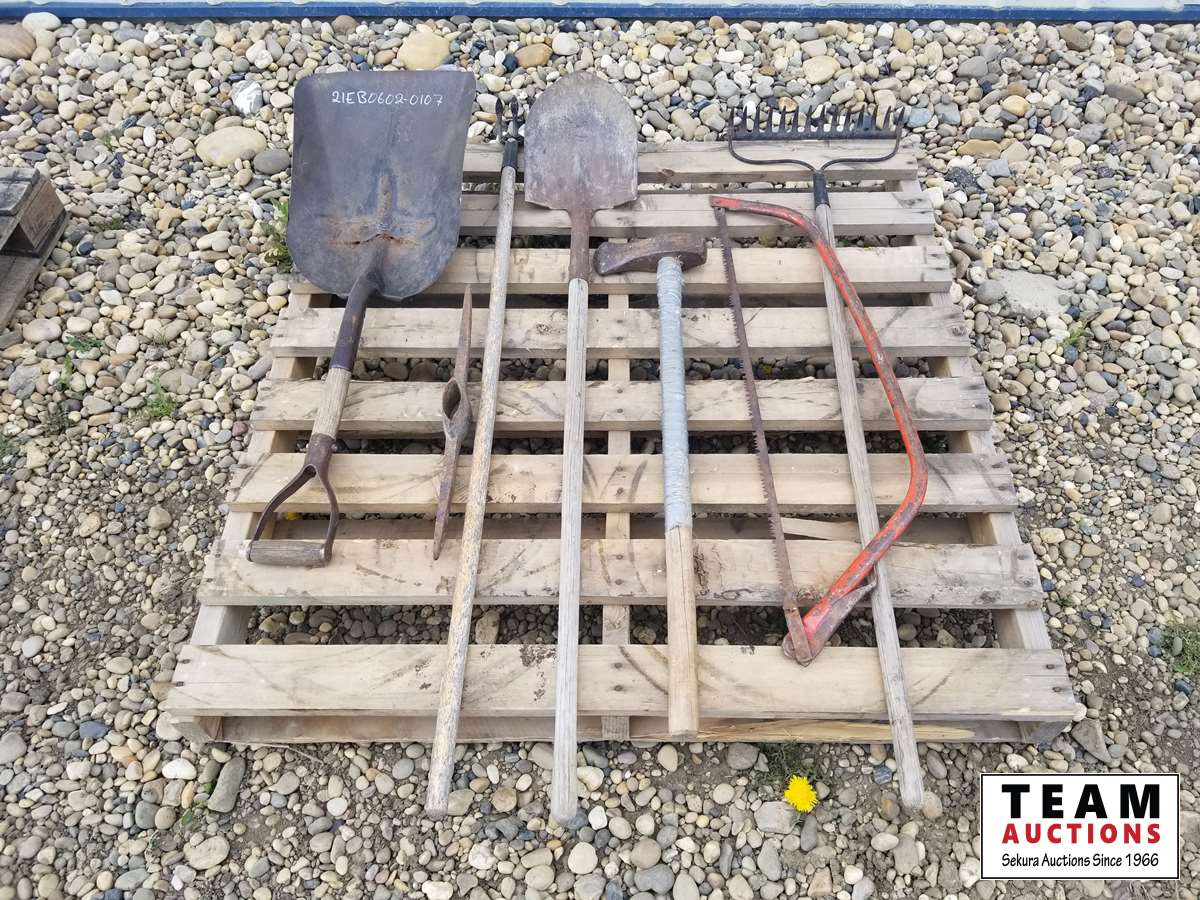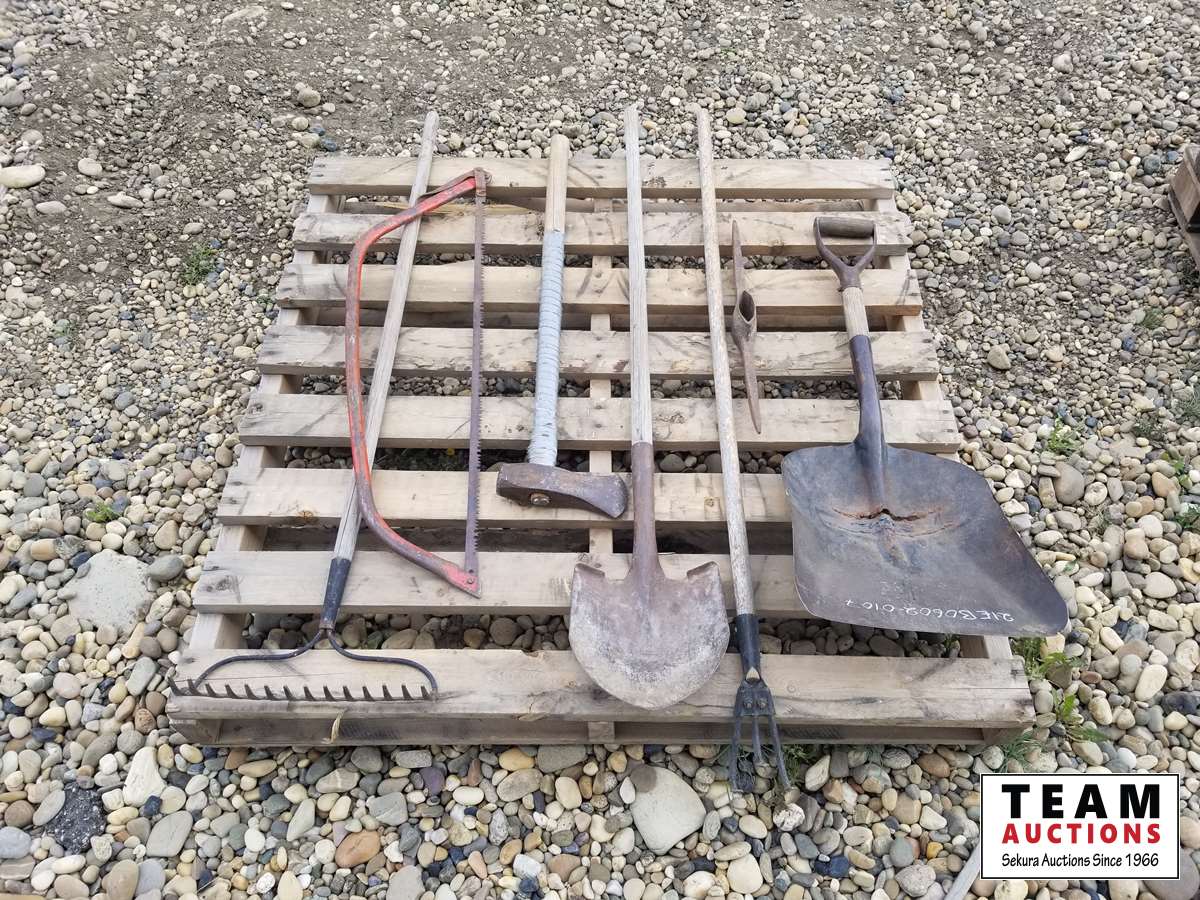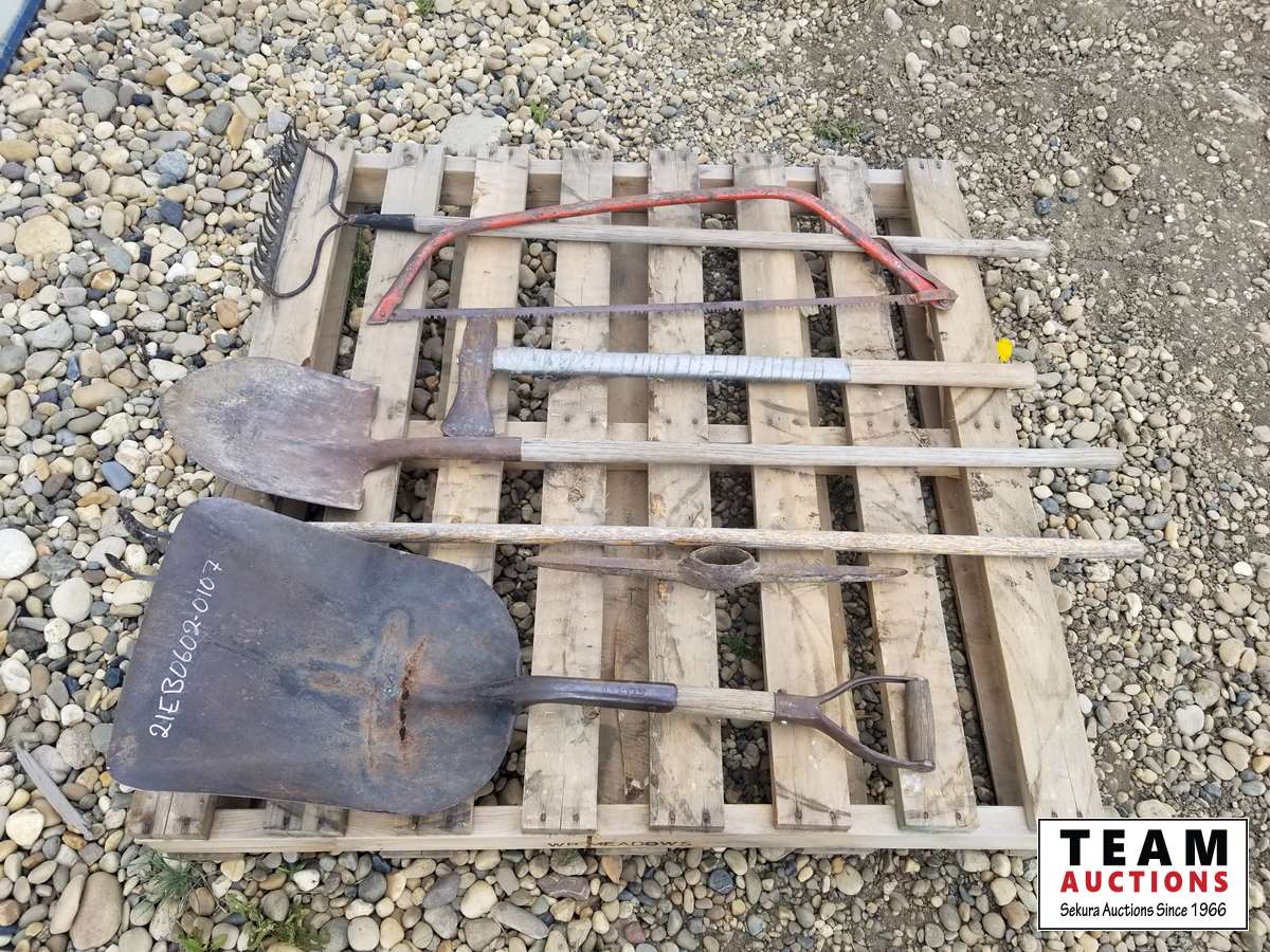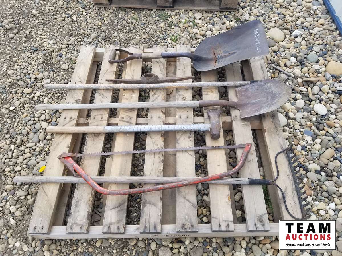 468 Pallet of Rake, Shovels, Saw & Axes