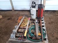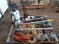 Bumper jacks, extension cords, clevises, water hose, axes, hand pump sprayers, Hilti pressure sprayer does not work, & miscellaneous