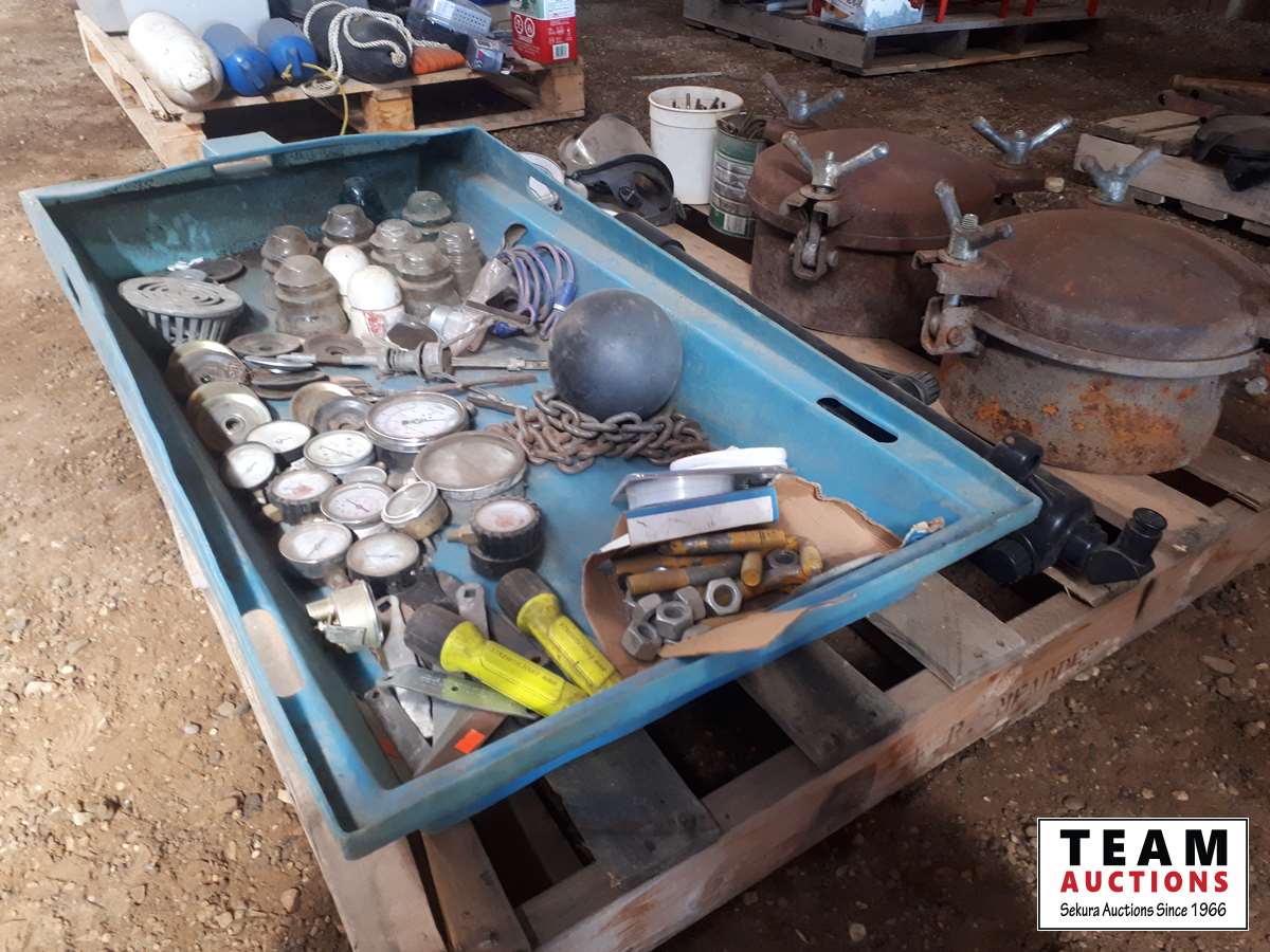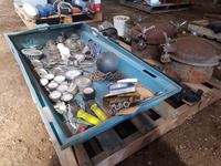 Gauges, bolts, pulleys, oil pan, (2) access pressure caps (unused) & miscellaneous