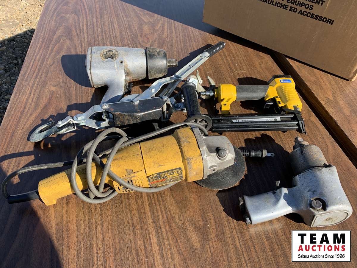 226 (1) 3/4, (1) 1/2 Air Impact, (1) 5 Inch Grinder, (1) Brad Nailer, & (1) Come Along