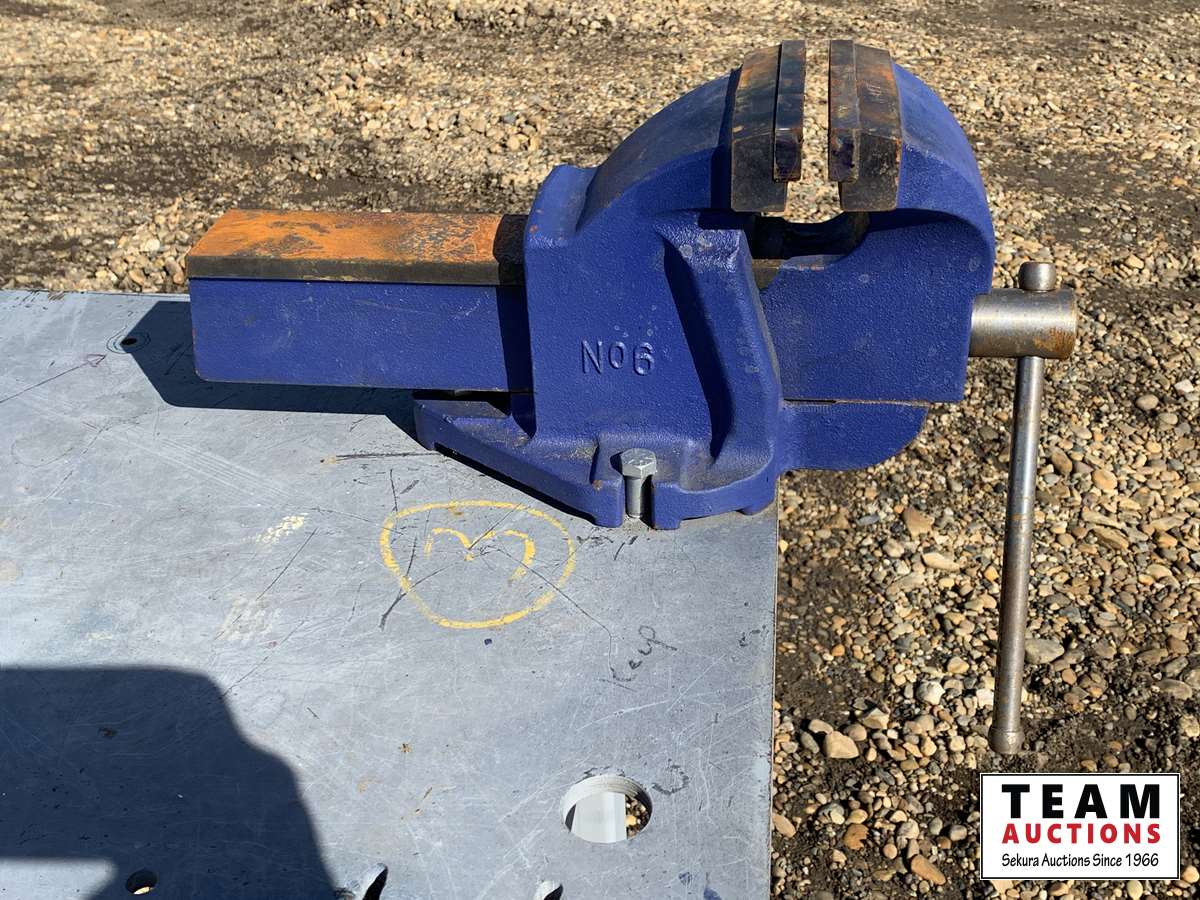 (1) Canwood small drill press, & (1) 5 inch #6 vise mounted to the table