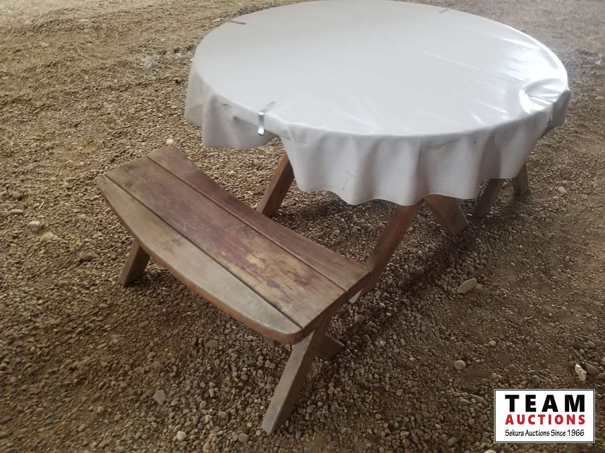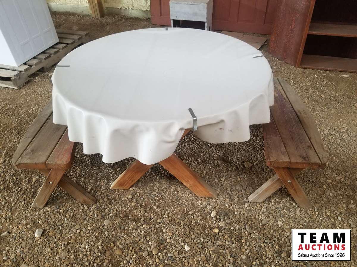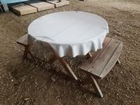 43 42 Inch Outdoor Round Cedar Table w/ 2 Benches