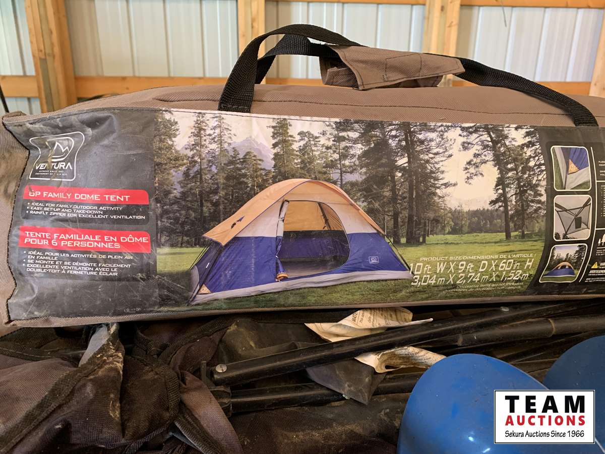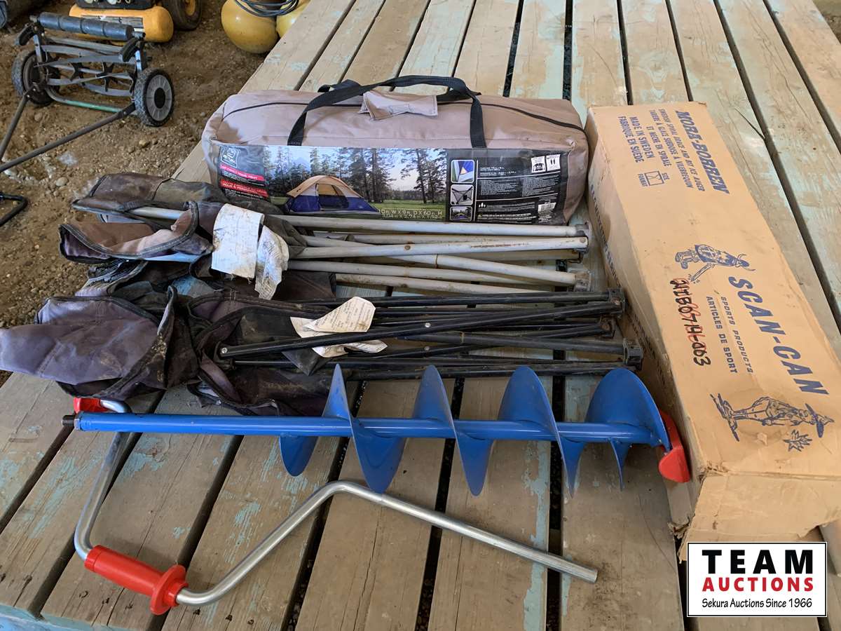 309 6 Person Tent, Ice Auger, 2 Lawn Chairs