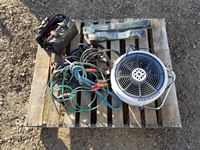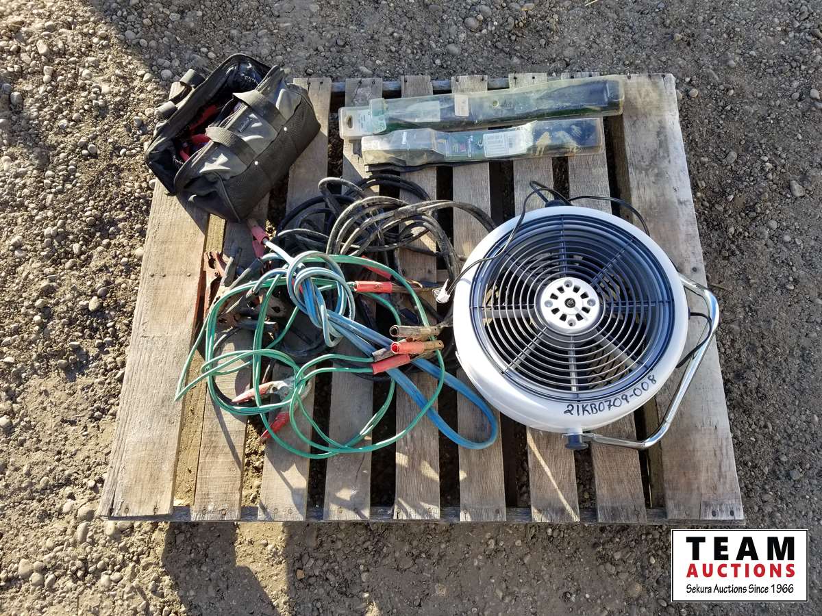 Booster cables, lawnmower blades, fan