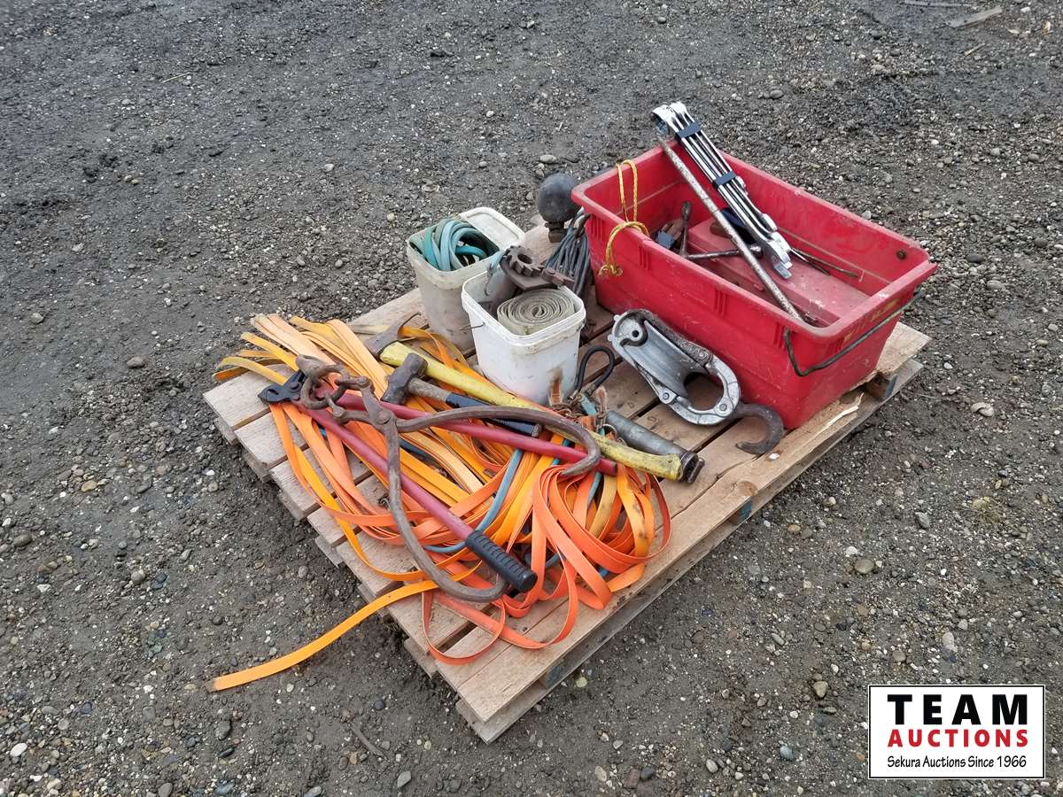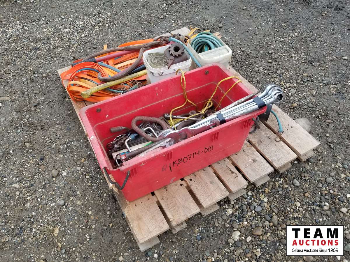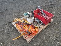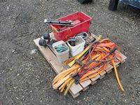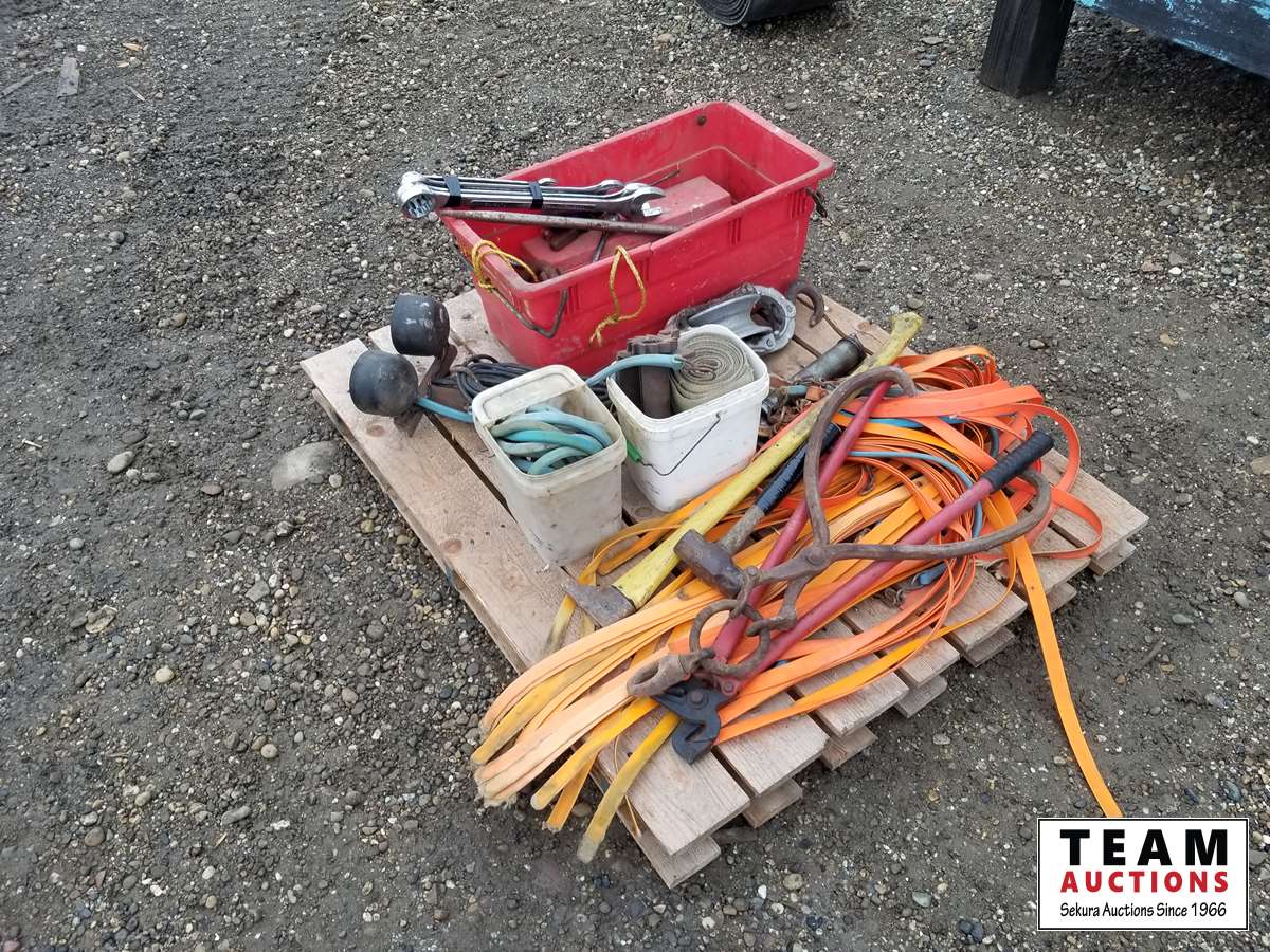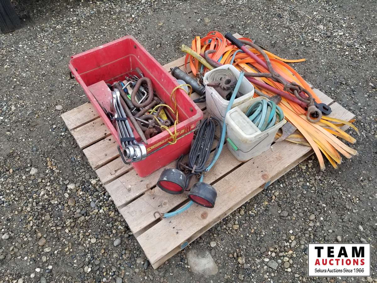 Grease gun, lights, wrenches, hammer, pulley