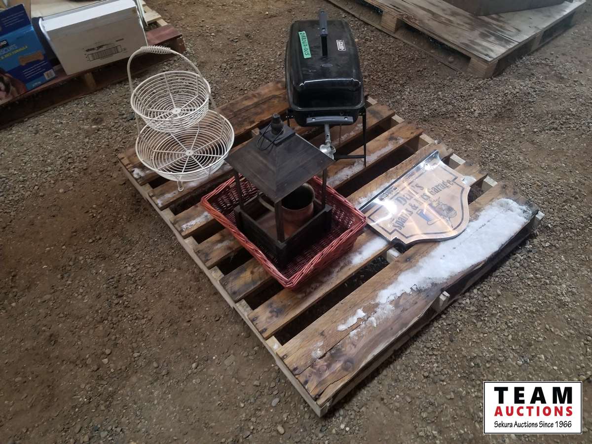 Fruit basket, large candle holder, sign, basket, portable Bar B Que