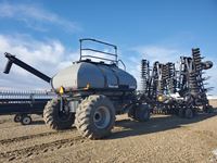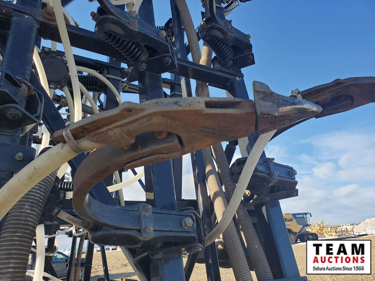 floating hitch, 9 in spacing, single shoot, 4 in steel packers, Flexi-Coil 3450 cart, 2 fans, 3/4 in openers