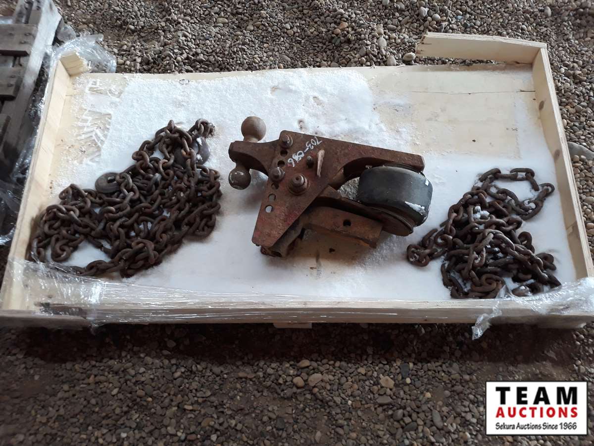 143 Pallet with Shop Built Air Bag Hitch & Misc Chains
