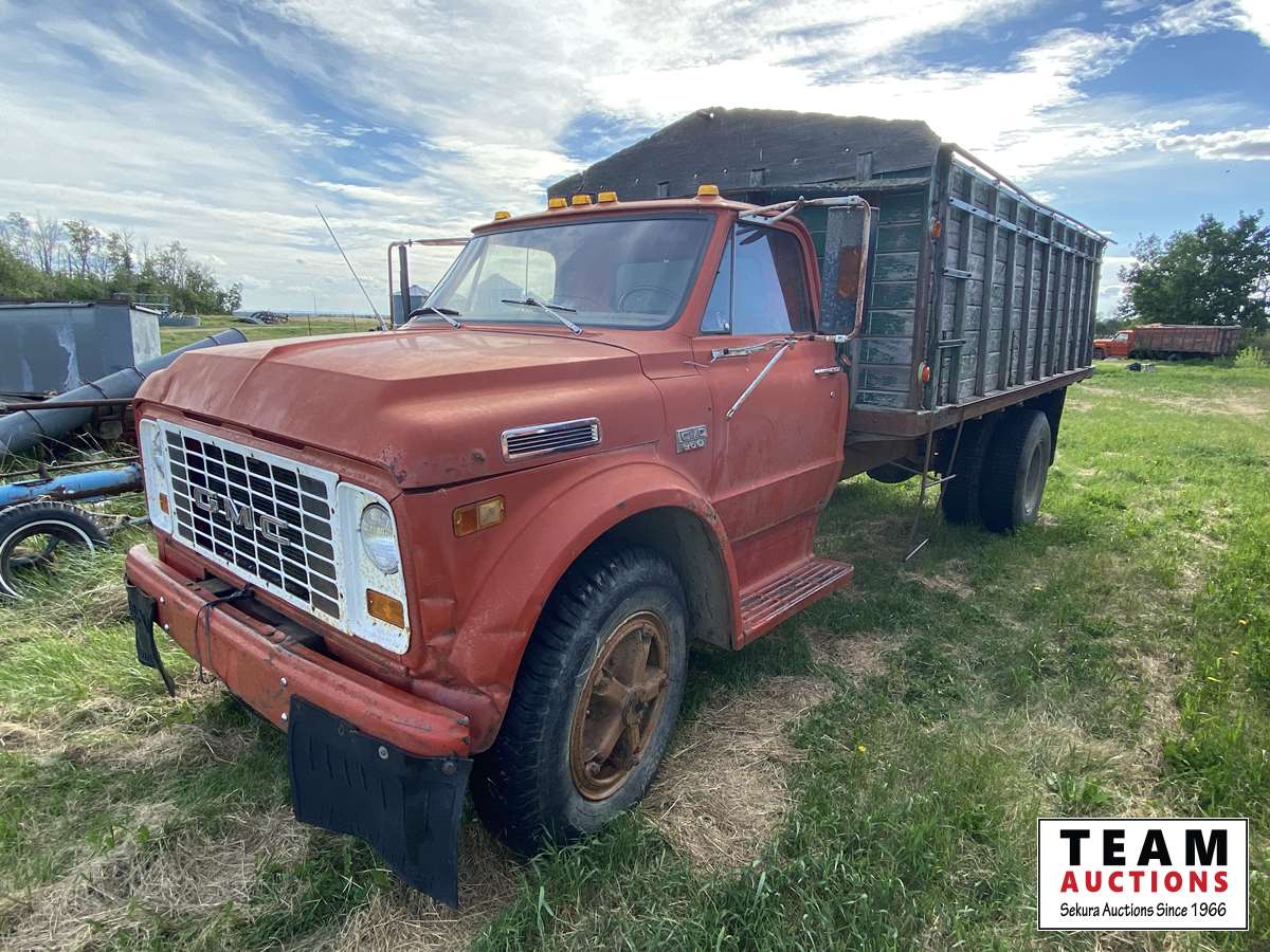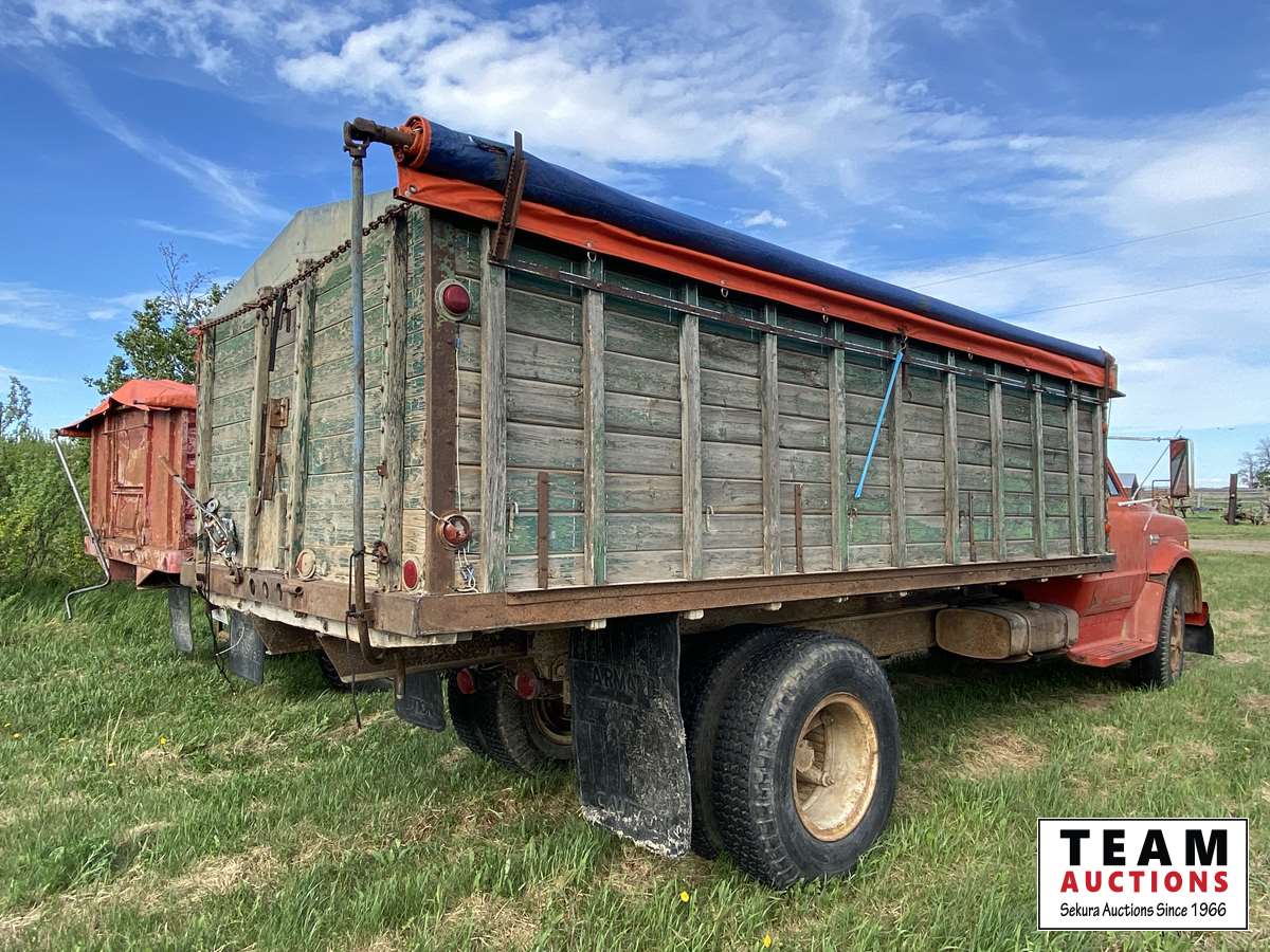 gas engine, 5+2 standard transmission, 16 ft wood box, roll tarp, hydraulic brakes, spring suspension, 10:00-20 rubber, 85,000 miles showing