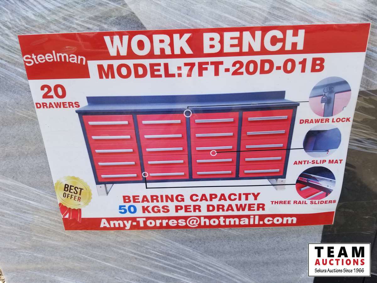 87 x 23 x 39 inch. Packed in plastics. Drawers with lock and Anti-slip inners. Using new 3 rail sliding