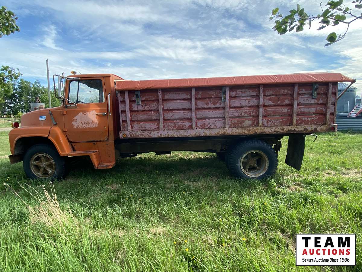 gas engine, 5+2 standard transmission, 14 ft steel box, roll tarp, hydraulic brakes, 9.00-20 rubber, 62,000 miles