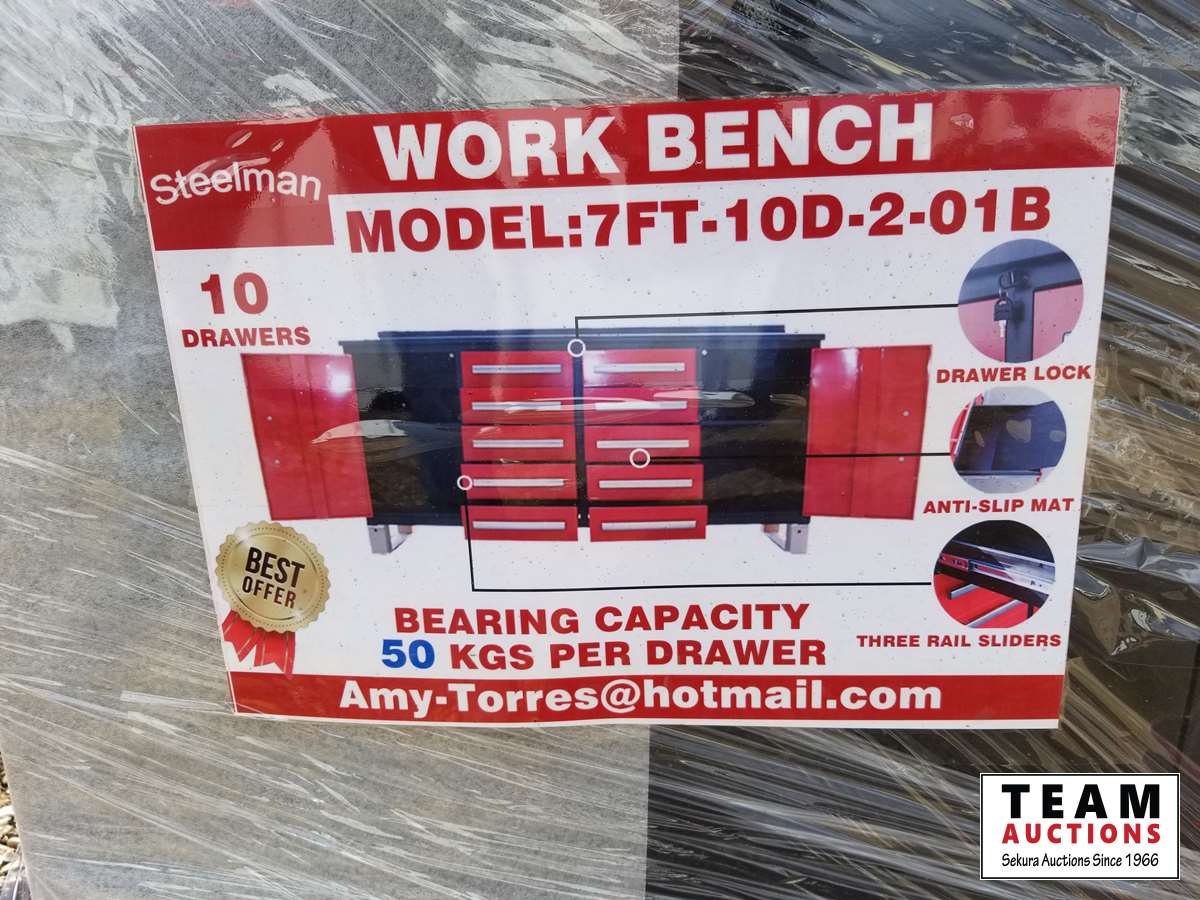 110 Steelman 7 Ft Work Bench with 10 Drawers & 2 Cabinets
