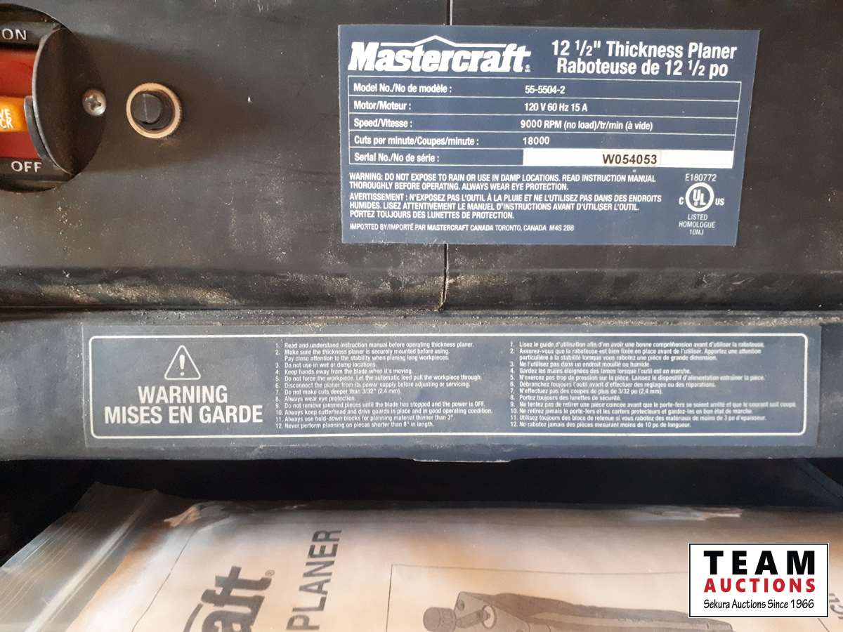 (1) Mastercraft 12 1/2 in Thickness Planer, (1) Mastercraft 16 in Scroll Saw