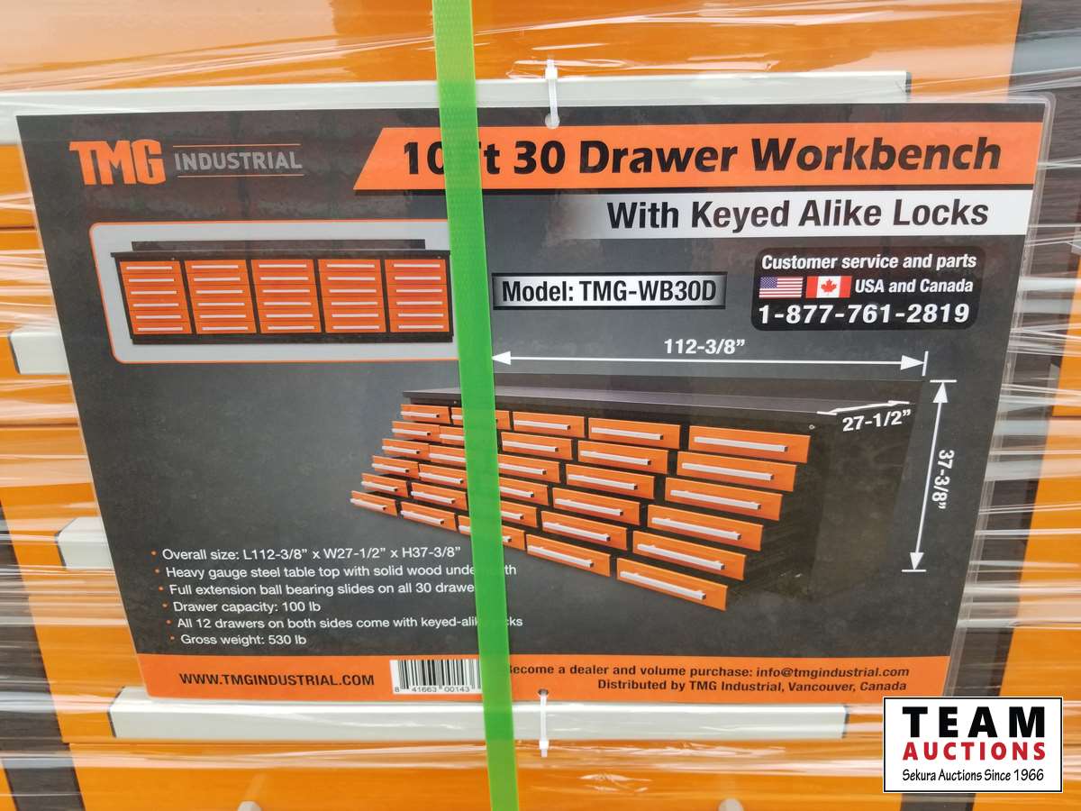 128 TMG Industrial 10 Ft 30 Drawer Workbench