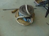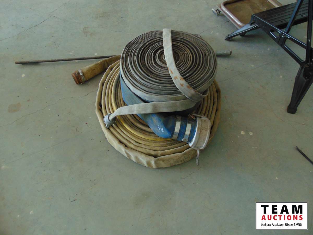 (1) 5 inch flat hose, (1) 3 inch flat hose, (1) 1.5 inch flat hose with hose roller