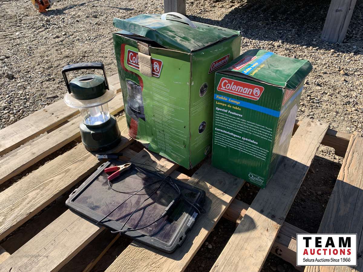Coleman table Lamp, solar panel, Coleman camping light