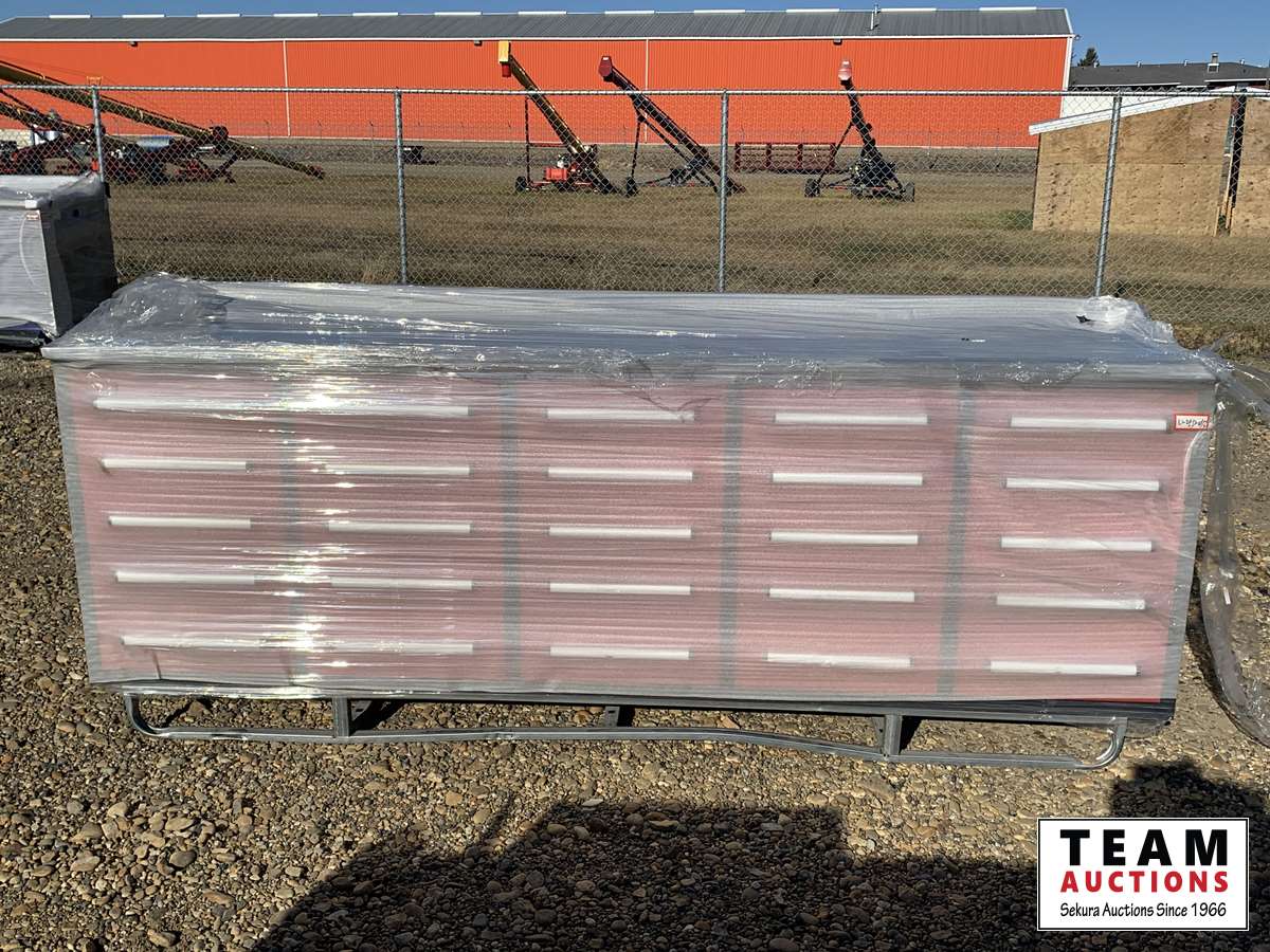 (25) drawers, 112 x 26 x 39 inch, drawers with lock and anti-slip liners, 3 rail sliding