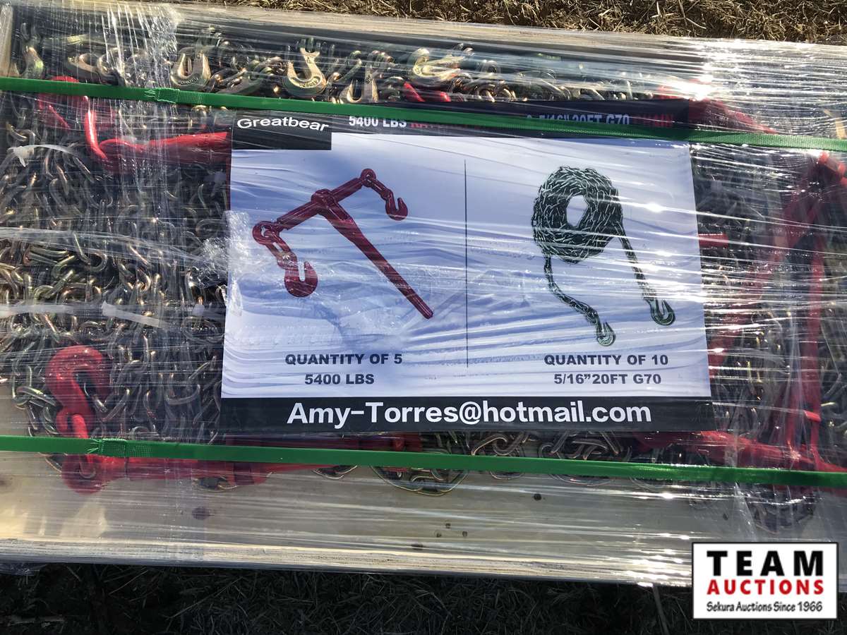 (5) 5400 lb ratchet binders, (10) 5/16 in. 20 ft G70 chains