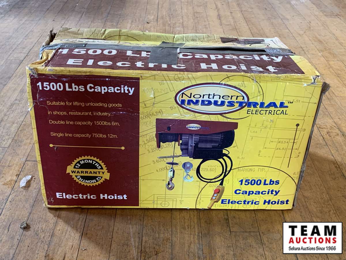 664 Unused Northern Industrial Electrical 1500 Lb Electric Hoist