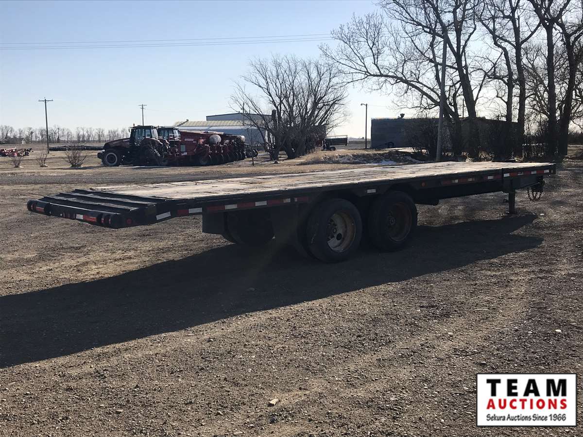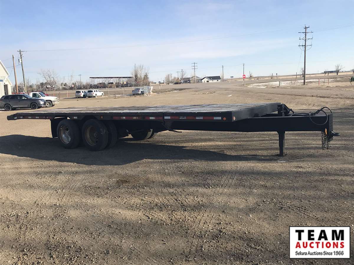 pintle hitch, 8 ft 6 in. wide, 24 ft, tilt deck, 20,000 lb axles, spring over walking beam, 255/70R22.5 AB CVIP 03/22