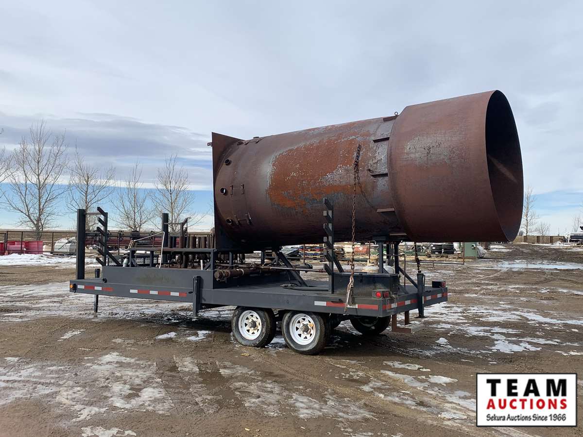 14 ft x 6 ft cylinder, 28x10 cu x m cu m gas rate per day capacity, adjustable flow, hyd lift, pipe racks, 2 5/16 in. ball hitch, 2x8 square tubing frame, 6000 lb axles, electric brakes, 225/75R15