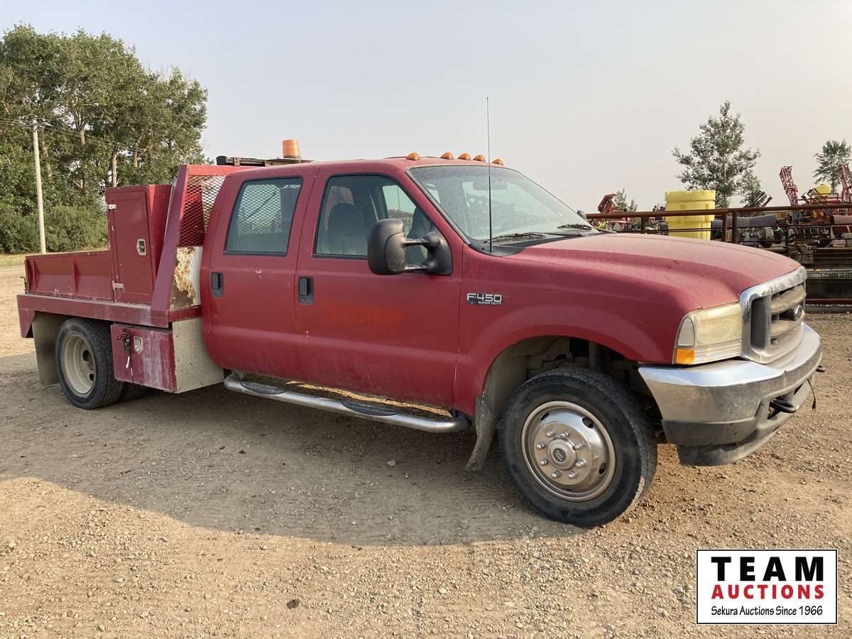 90 2002 Ford F450 Crew Cab Flatdeck Truck