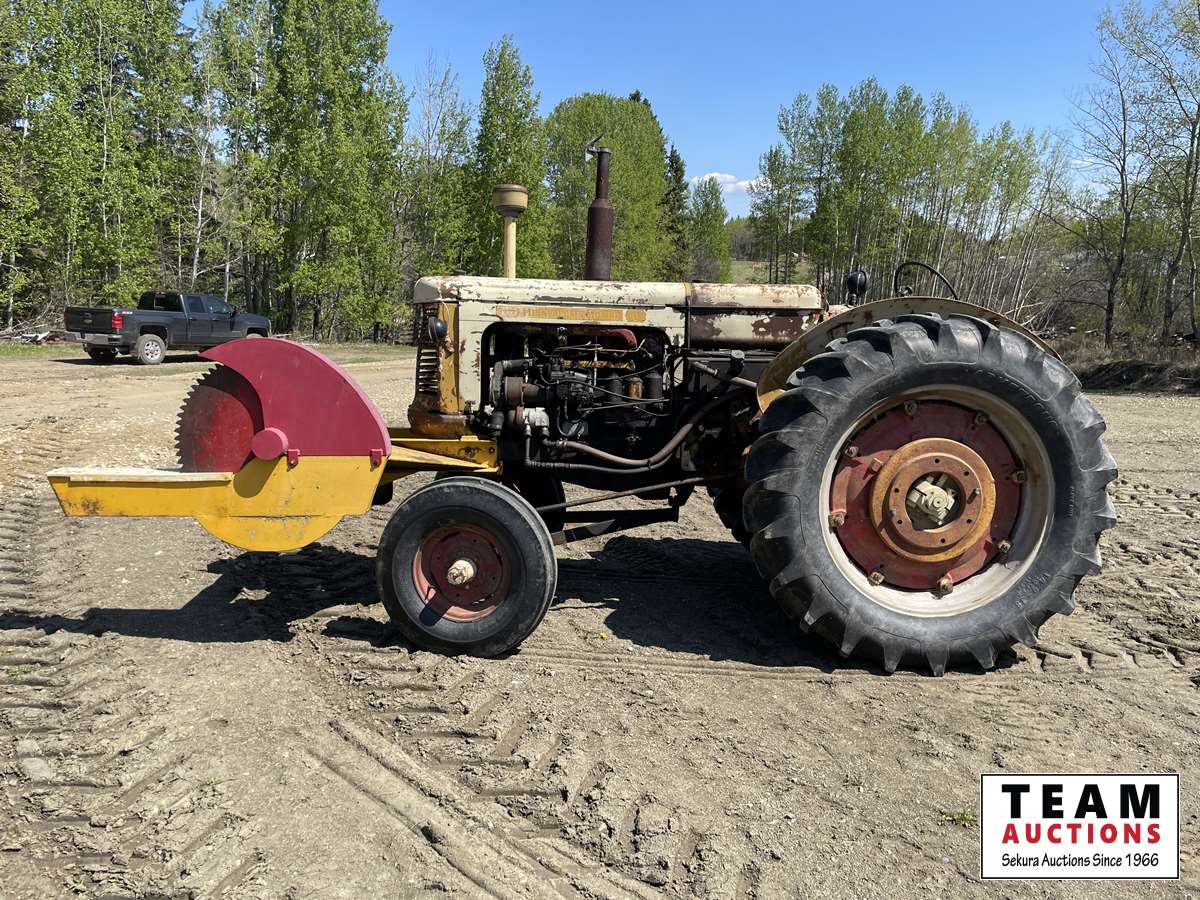 diesel engine, front mount wood saw, belt pulley, 540 pto, single rear hydraulic outlet, real good 14.9X38 rear tires