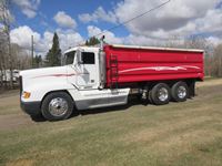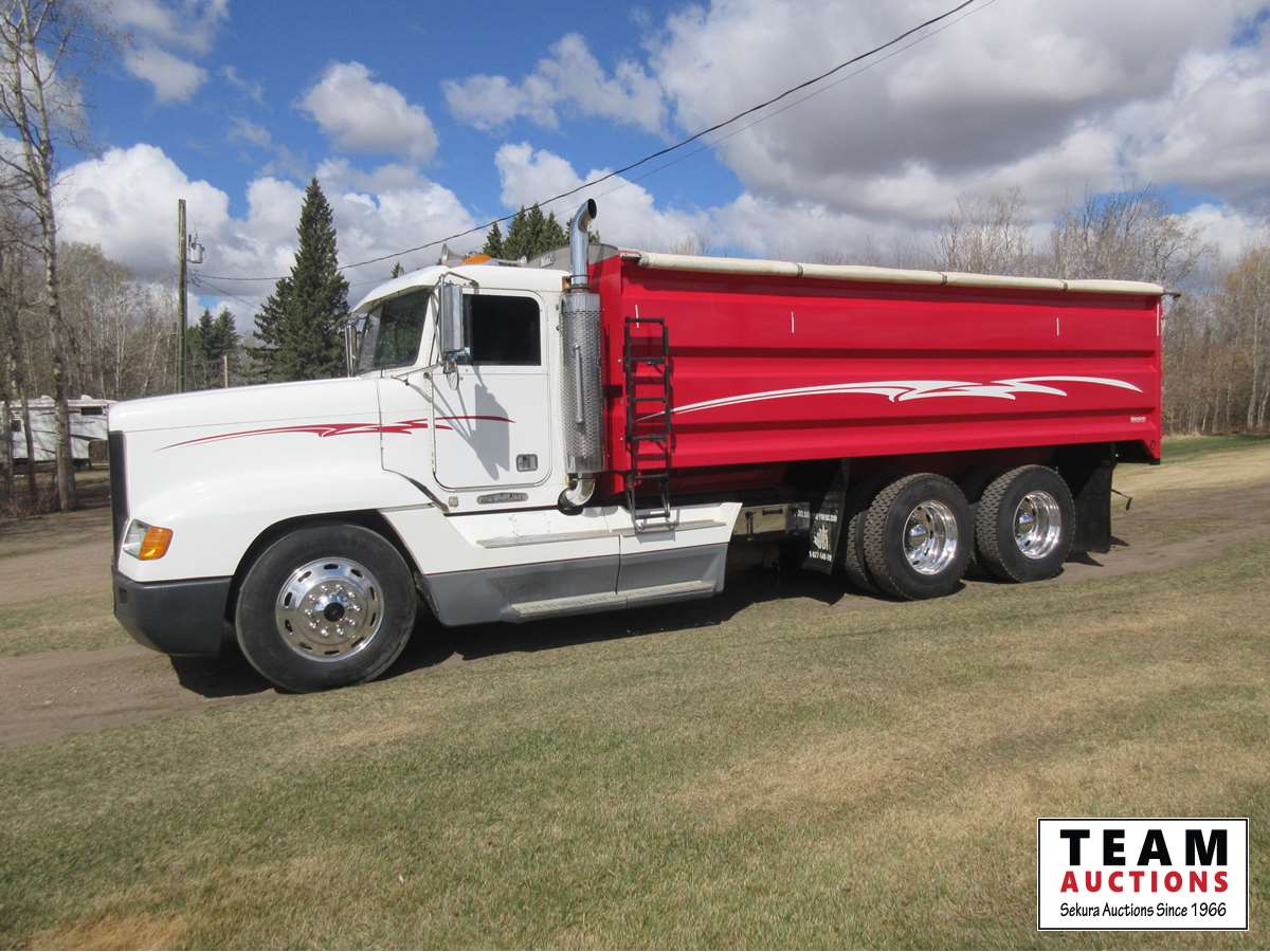 N14 Cummins eng, 13 spd transmission, air ride suspension, 12,000 lb frt & 40,000 rears, 10 year old Courtney Berg 20' steel box hoist, remote opener, roll tarp, 11R24.5 rubber on aluminum rims, shows 437,856 kms